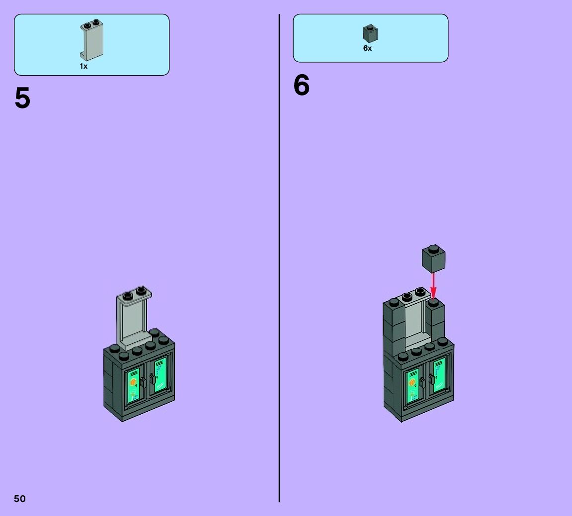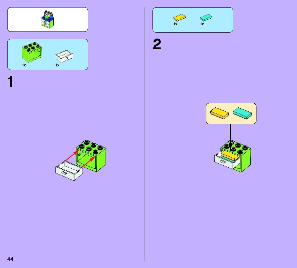 The assembly guide is prepared in a very understandable way for children and adult LEGO enthusiasts. A total of 116 picture galleries are shown, explaining the step-by-step construction stages for 2 different structures.