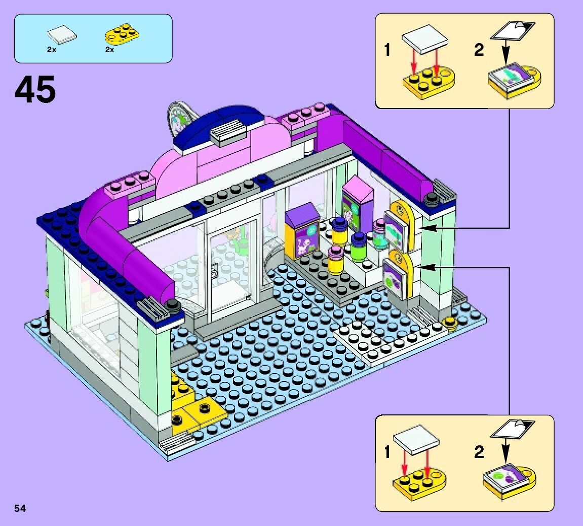 On this page you can find the original construction manual for the LEGO 41007 set. With the assembly manual you can easily learn how to build the 41007 Heartlake Pet Salon step by step. The set was released in 2013.