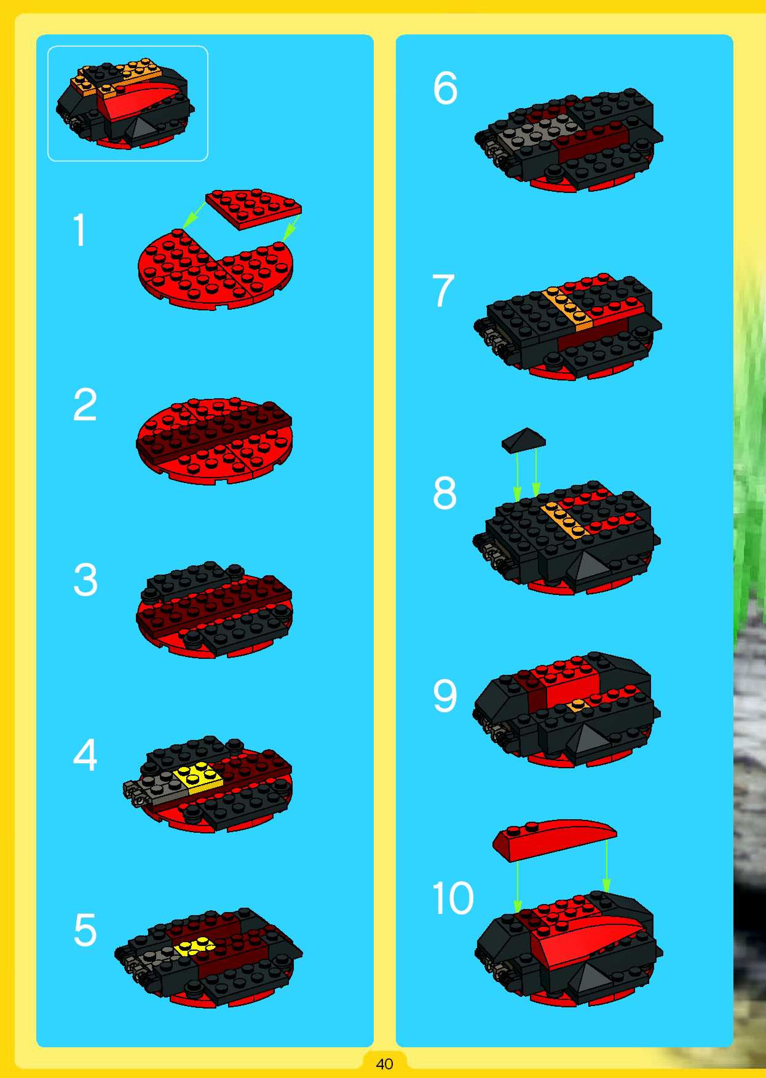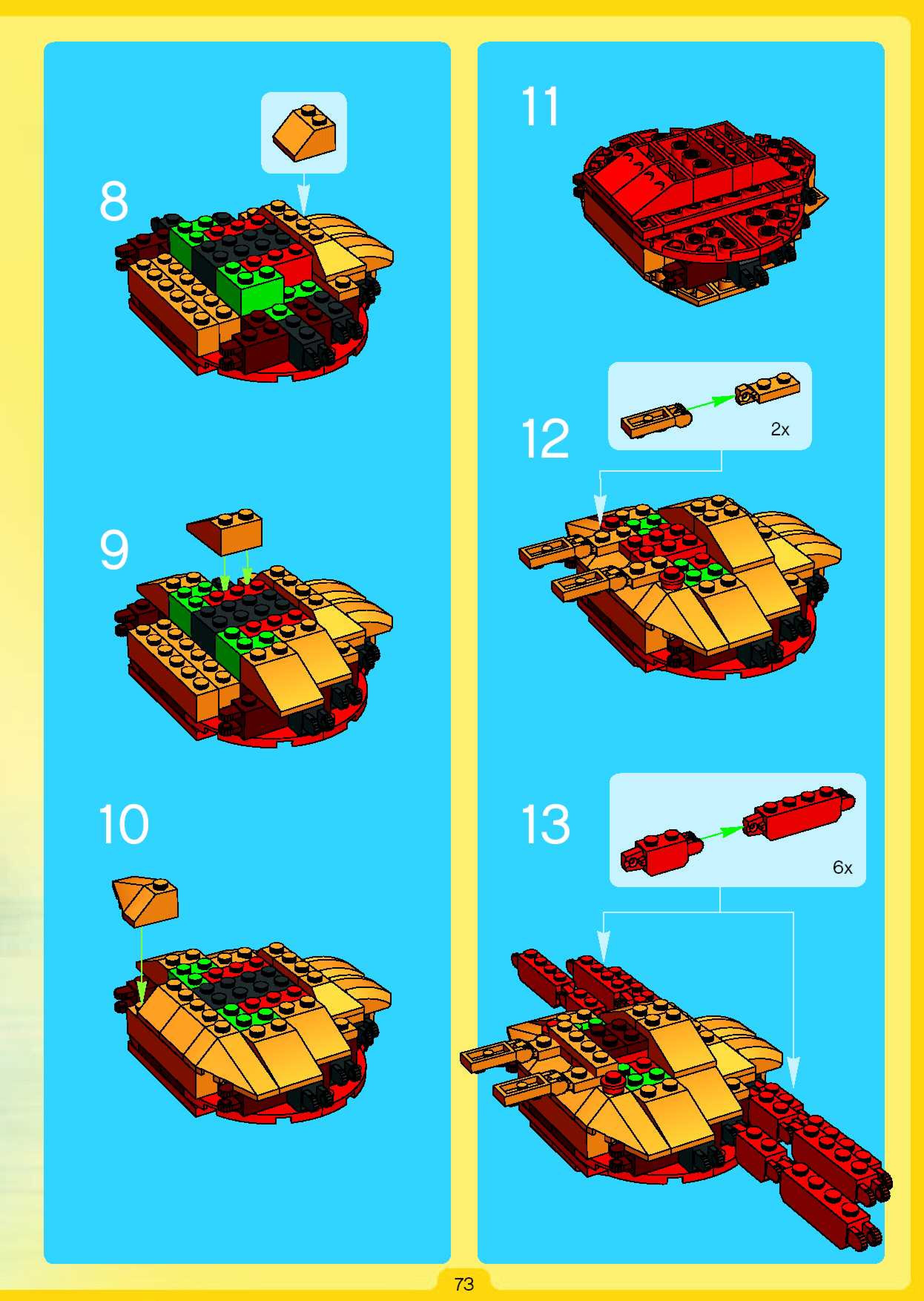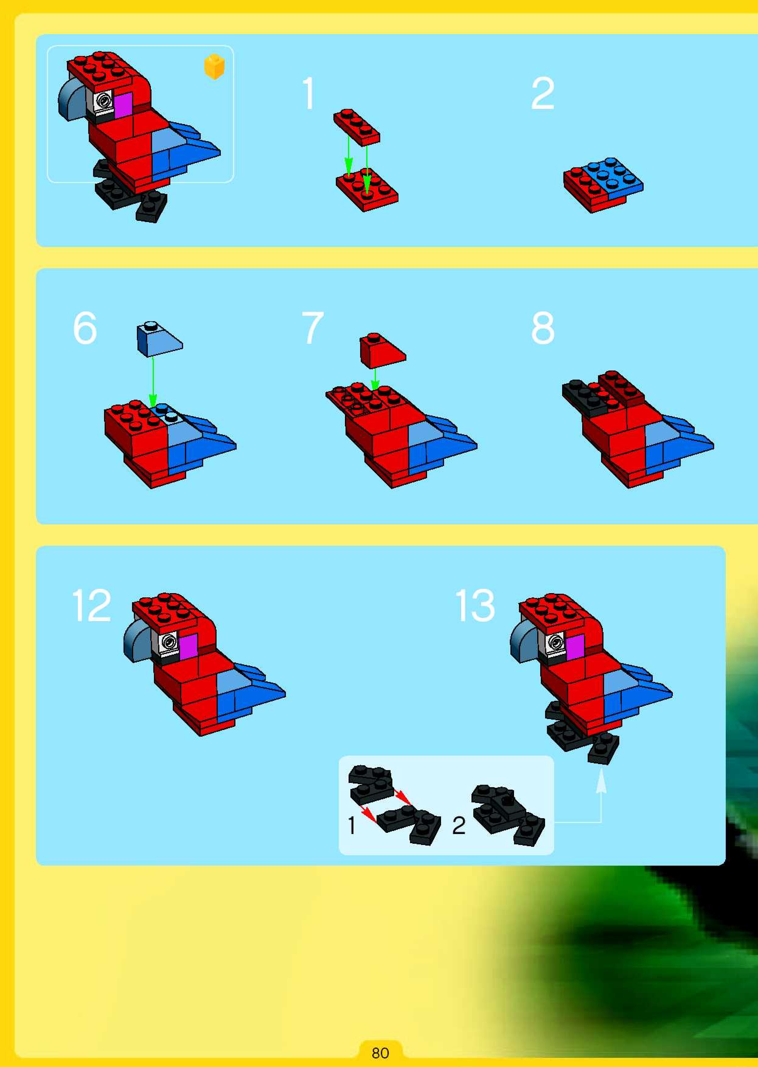 The assembly guide is prepared in a very understandable way for children and adult LEGO enthusiasts. A total of 84 picture galleries are shown, explaining the step-by-step construction stages for 1 different structures.