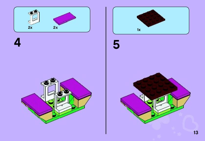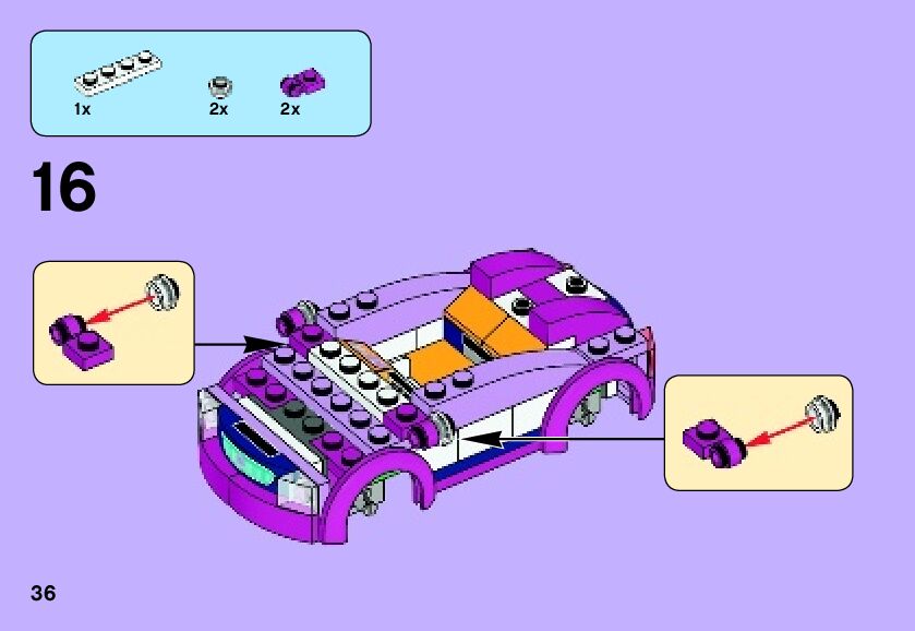 On this page you can find the original construction manual for the LEGO 41013 set. With the assembly manual you can easily learn how to build the 41013 Emma's Sports Car step by step. The set was released in 2013.
