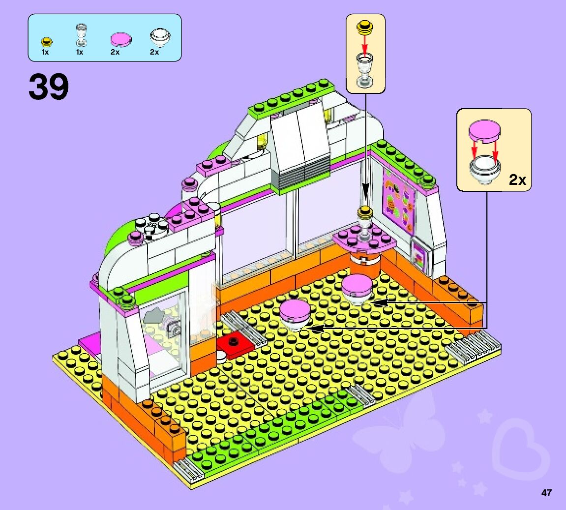 On this page you can find the original construction manual for the LEGO 41035 set. With the assembly manual you can easily learn how to build the 41035 Heartlake Juice Bar step by step. The set was released in 2014.