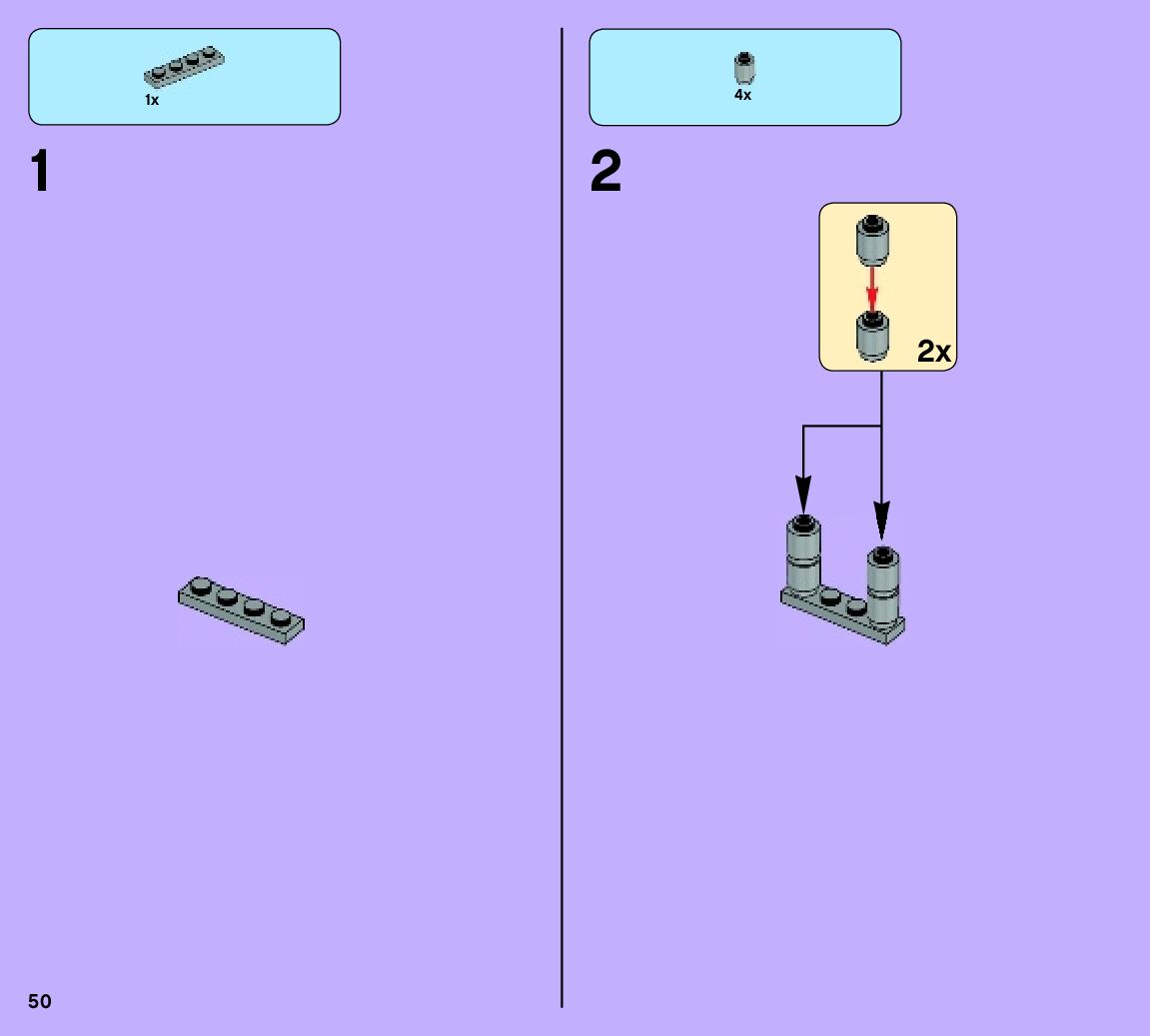 The assembly guide is prepared in a very understandable way for children and adult LEGO enthusiasts. A total of 96 picture galleries are shown, explaining the step-by-step construction stages for 2 different structures.