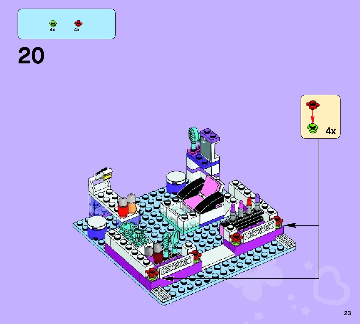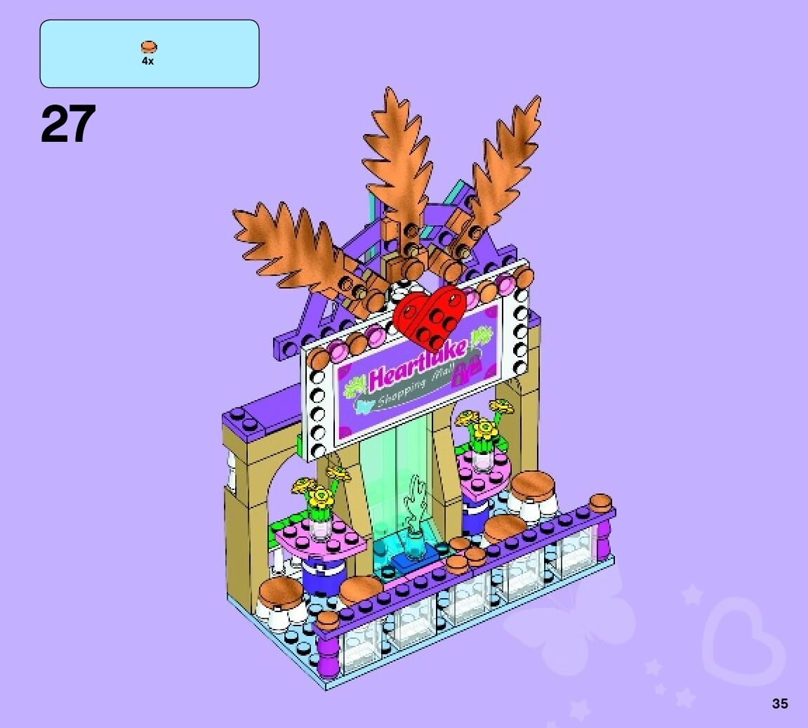 This page shares information about LEGO 41058 Heartlake Shopping Mall manual, LEGO 41058 PDF instructions, LEGO 41058 Heartlake Shopping Mall building guide online, How to build 41058 Heartlake Shopping Mall LEGO.