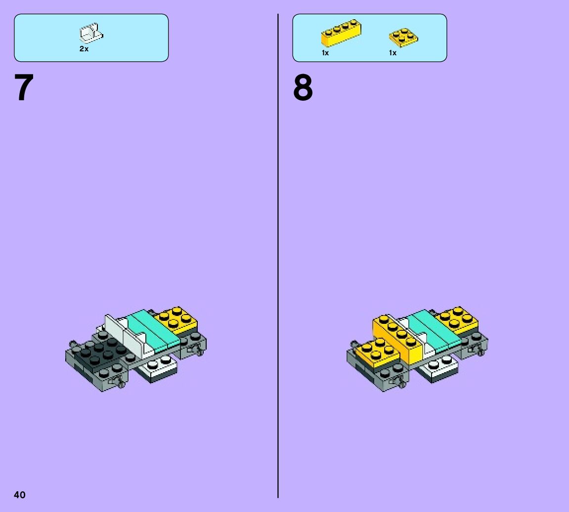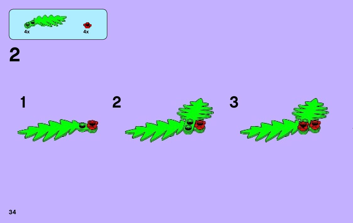 The assembly guide is prepared in a very understandable way for children and adult LEGO enthusiasts. A total of 260 picture galleries are shown, explaining the step-by-step construction stages for 4 different structures.