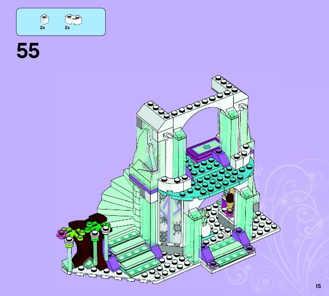 On this page you can find the original construction manual for the LEGO 41062 set. With the assembly manual you can easily learn how to build the 41062 Elsa's Sparkling Ice Castle step by step. The set was released in 2015.
