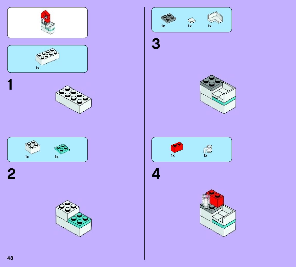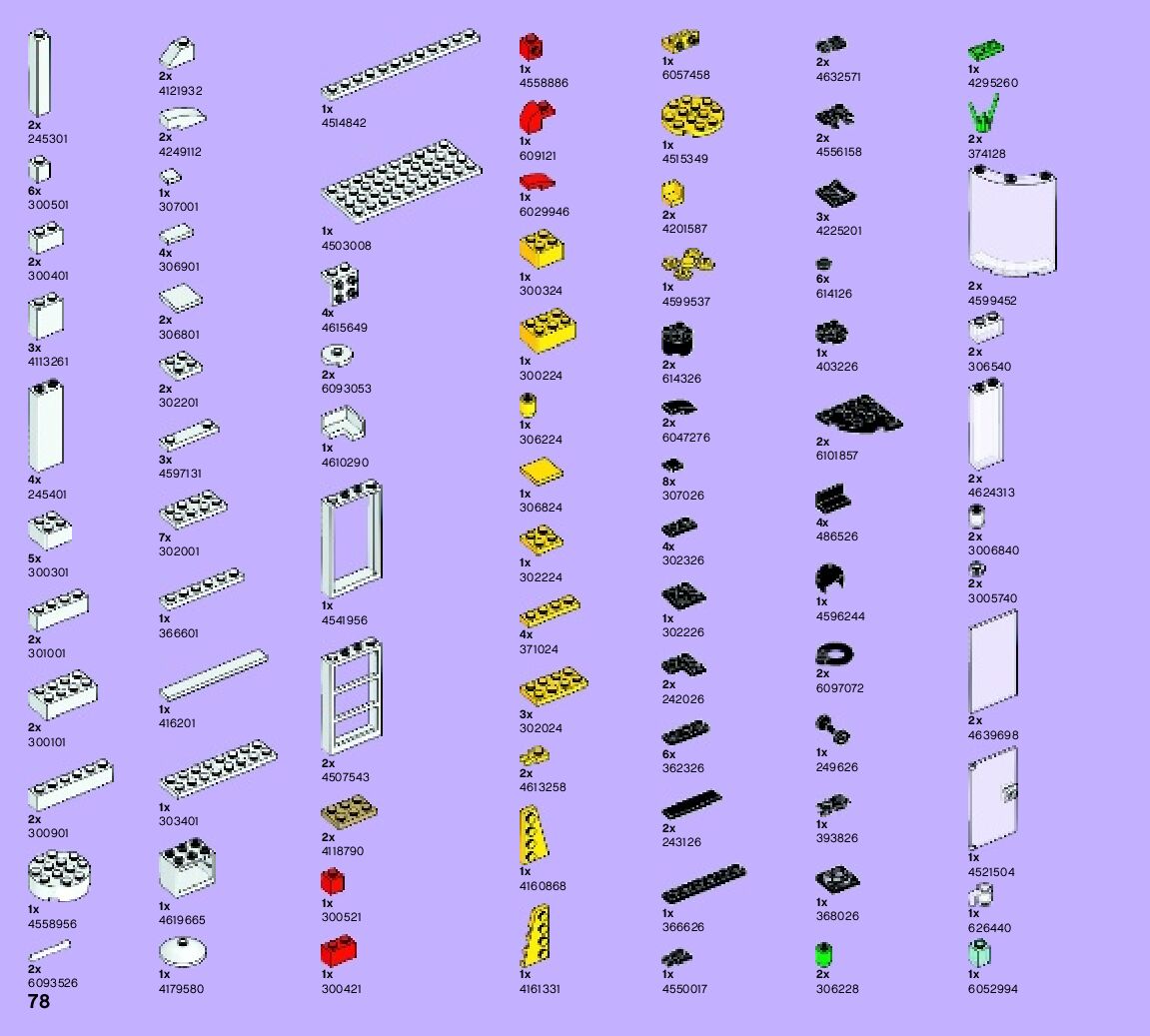 The assembly guide is prepared in a very understandable way for children and adult LEGO enthusiasts. A total of 84 picture galleries are shown, explaining the step-by-step construction stages for 1 different structures.