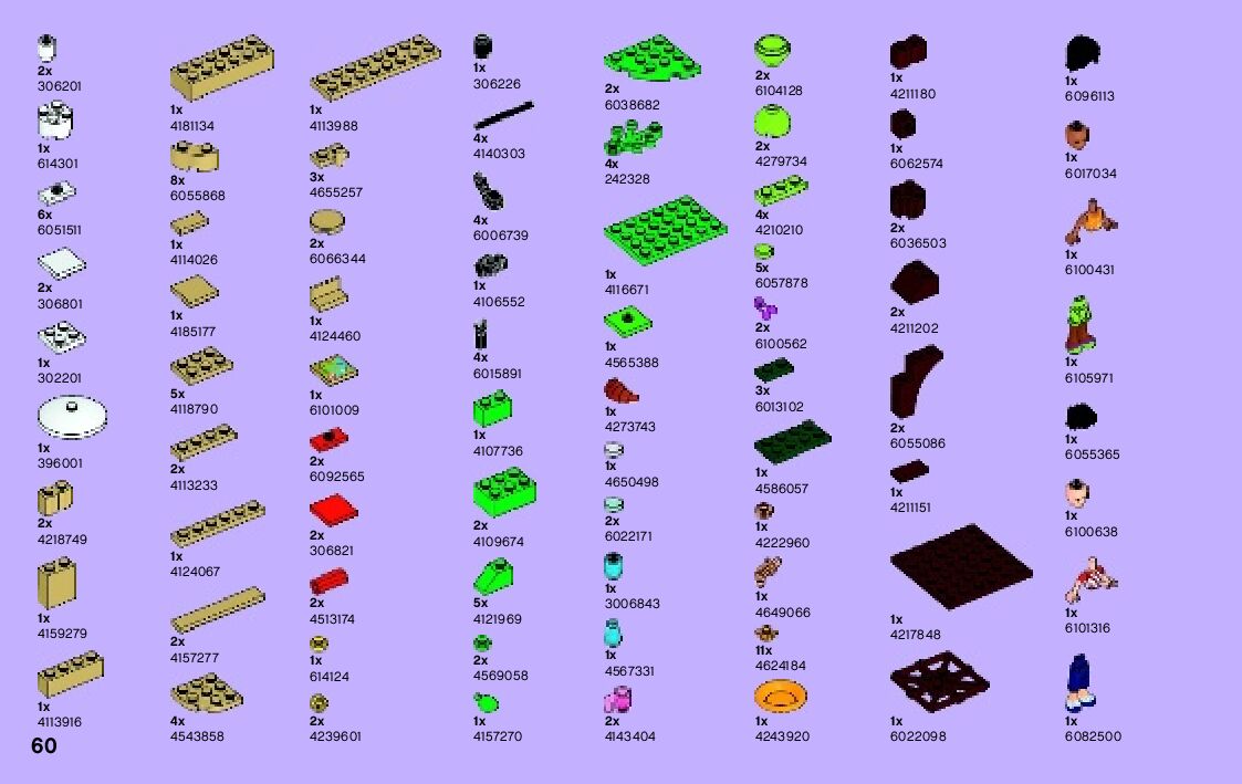 The assembly guide is prepared in a very understandable way for children and adult LEGO enthusiasts. A total of 68 picture galleries are shown, explaining the step-by-step construction stages for 1 different structures.