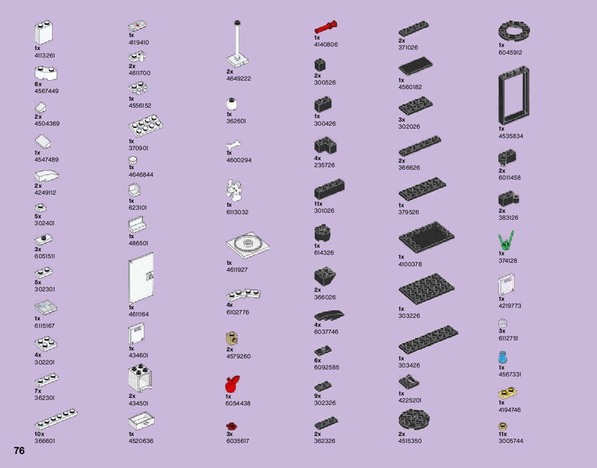 The assembly guide is prepared in a very understandable way for children and adult LEGO enthusiasts. A total of 84 picture galleries are shown, explaining the step-by-step construction stages for 1 different structures.