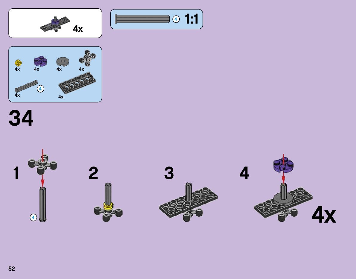 The assembly guide is prepared in a very understandable way for children and adult LEGO enthusiasts. A total of 124 picture galleries are shown, explaining the step-by-step construction stages for 2 different structures.