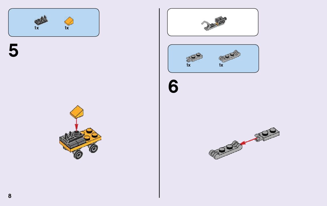 The assembly guide is prepared in a very understandable way for children and adult LEGO enthusiasts. A total of 68 picture galleries are shown, explaining the step-by-step construction stages for 1 different structures.