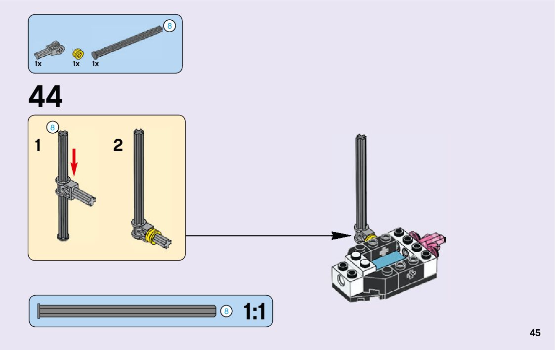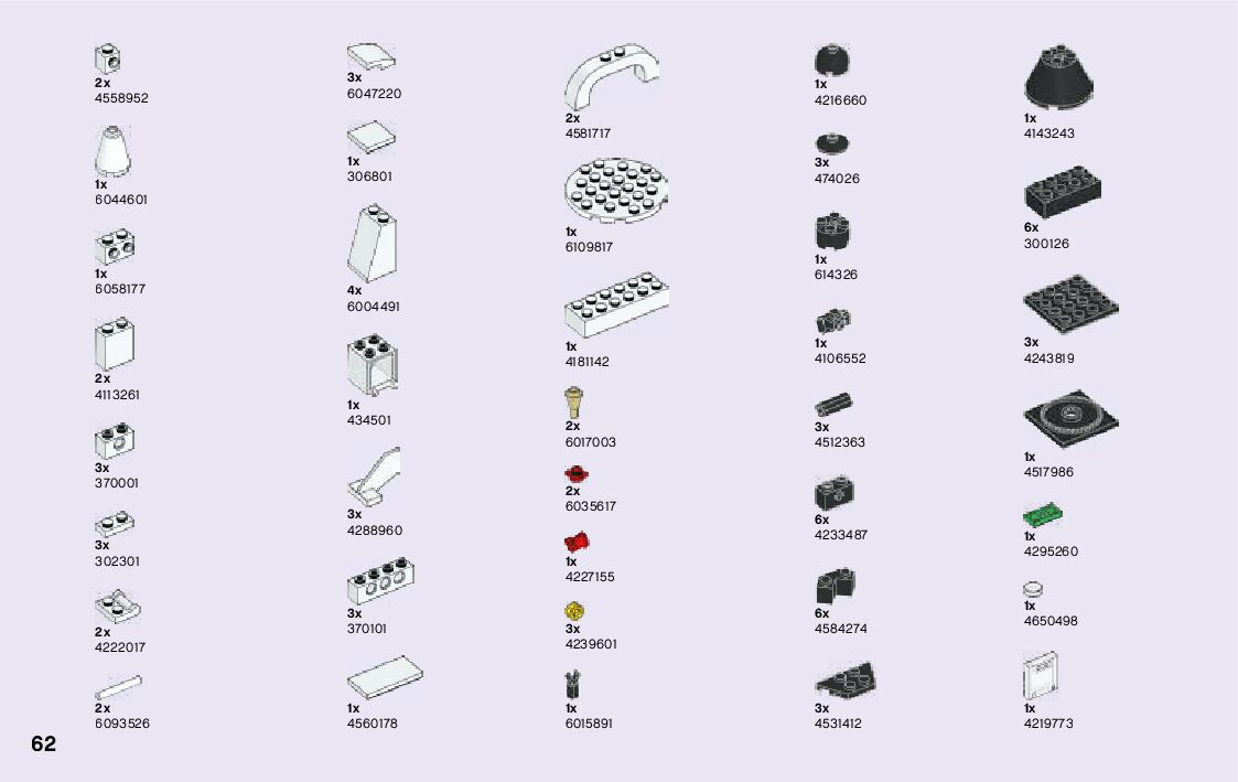The assembly guide is prepared in a very understandable way for children and adult LEGO enthusiasts. A total of 68 picture galleries are shown, explaining the step-by-step construction stages for 1 different structures.