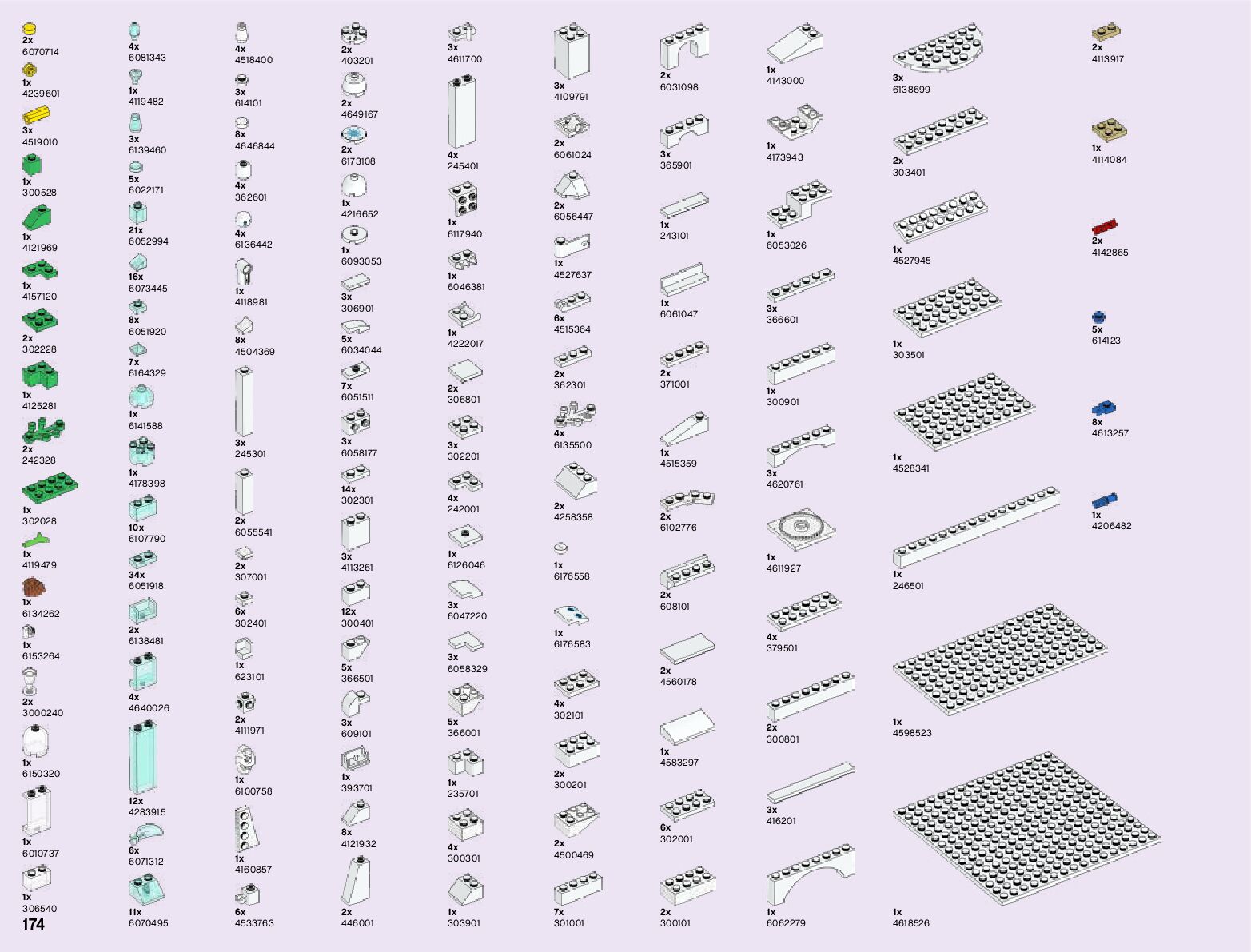 The assembly guide is prepared in a very understandable way for children and adult LEGO enthusiasts. A total of 180 picture galleries are shown, explaining the step-by-step construction stages for 1 different structures.