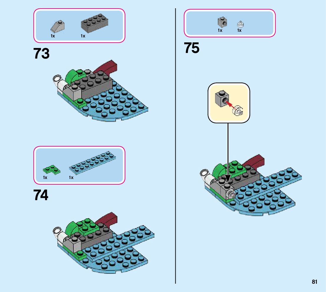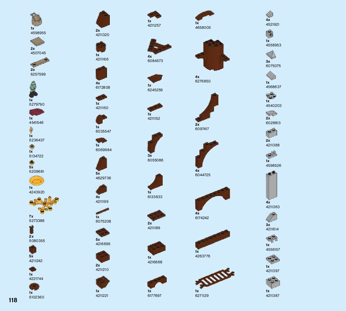 The assembly guide is prepared in a very understandable way for children and adult LEGO enthusiasts. A total of 120 picture galleries are shown, explaining the step-by-step construction stages for 1 different structures.