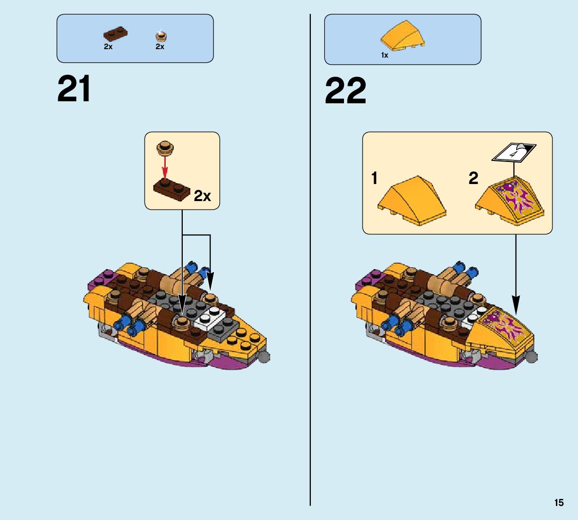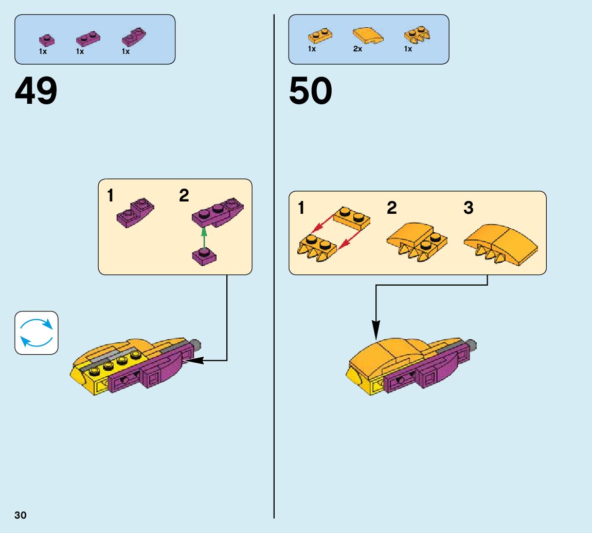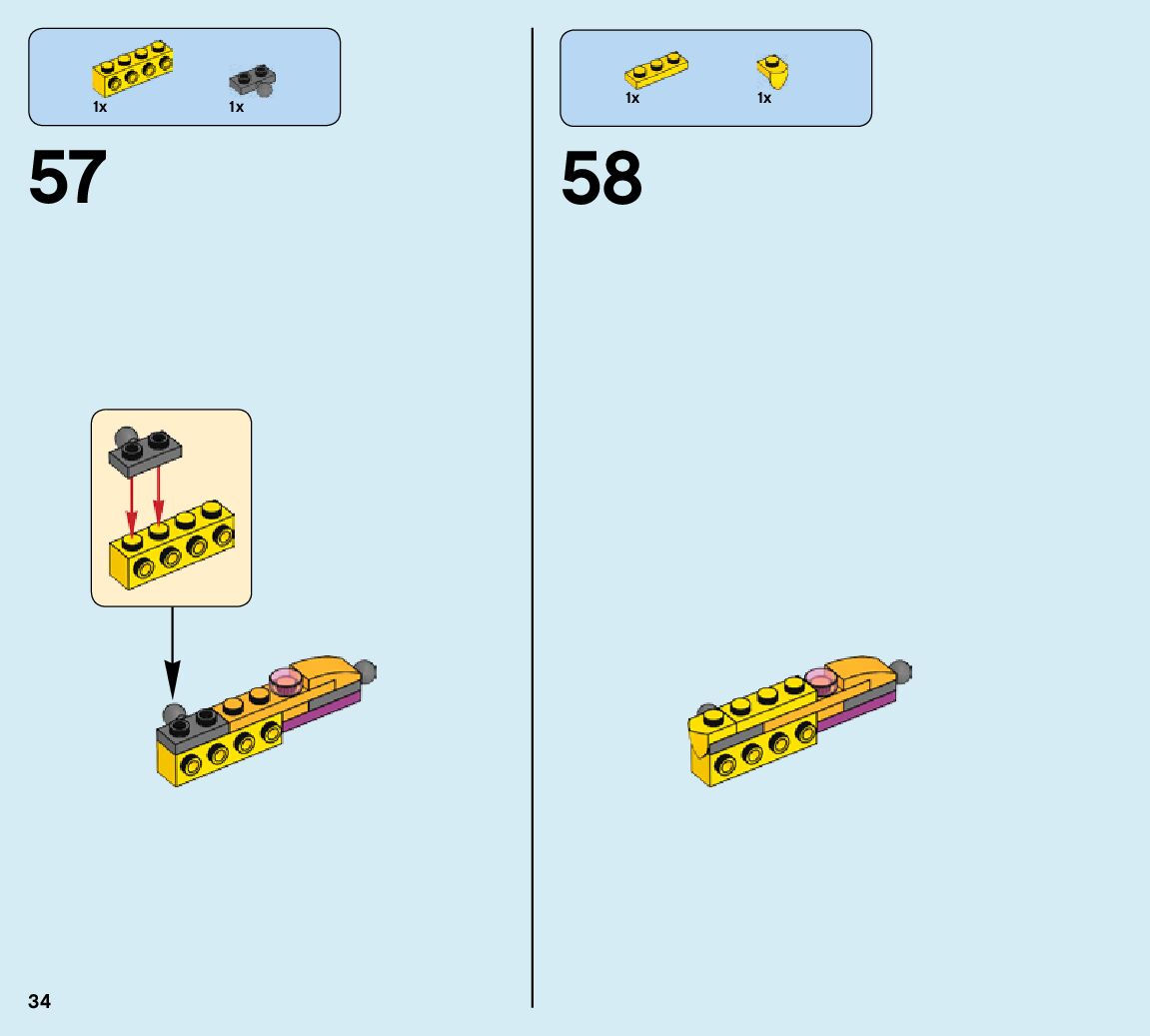 The assembly guide is prepared in a very understandable way for children and adult LEGO enthusiasts. A total of 540 picture galleries are shown, explaining the step-by-step construction stages for 2 different structures.