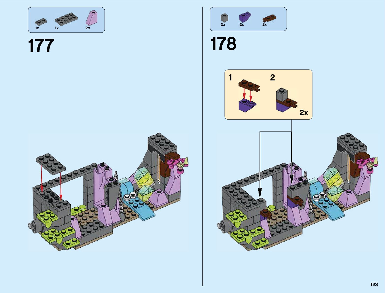 The assembly guide is prepared in a very understandable way for children and adult LEGO enthusiasts. A total of 180 picture galleries are shown, explaining the step-by-step construction stages for 1 different structures.