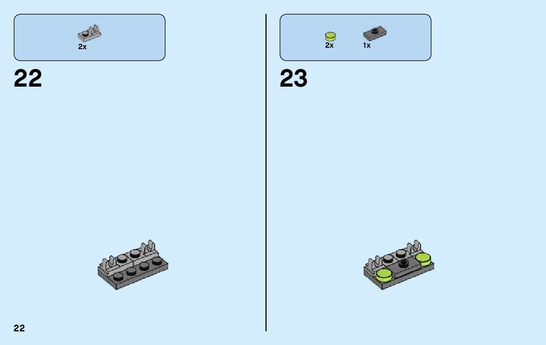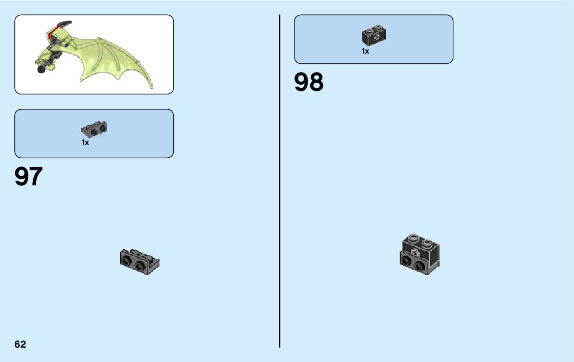 The assembly guide is prepared in a very understandable way for children and adult LEGO enthusiasts. A total of 624 picture galleries are shown, explaining the step-by-step construction stages for 2 different structures.