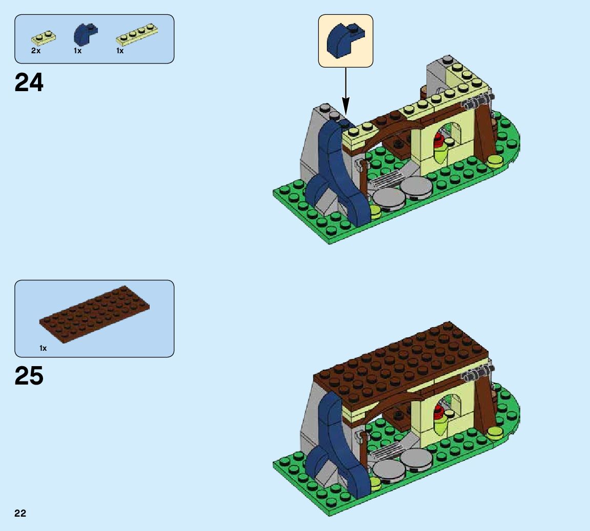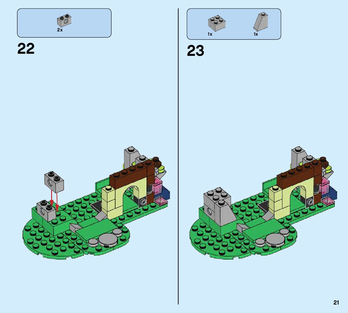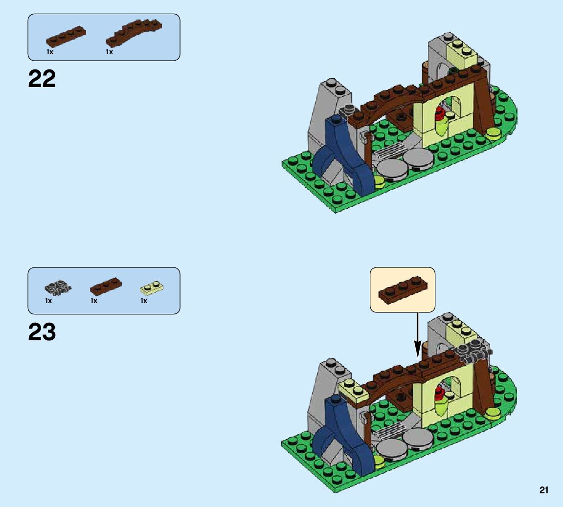 The assembly guide is prepared in a very understandable way for children and adult LEGO enthusiasts. A total of 880 picture galleries are shown, explaining the step-by-step construction stages for 3 different structures.