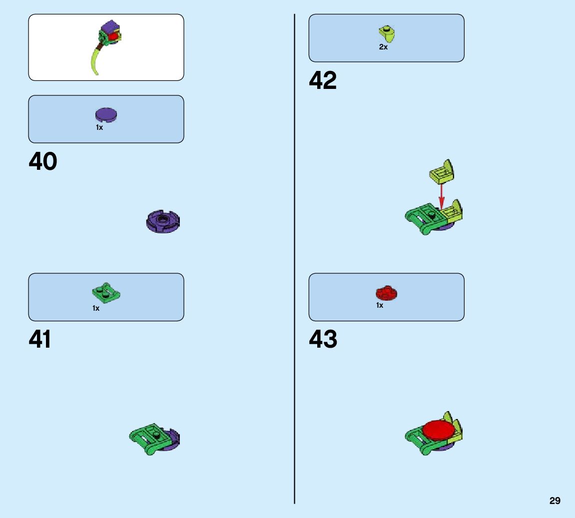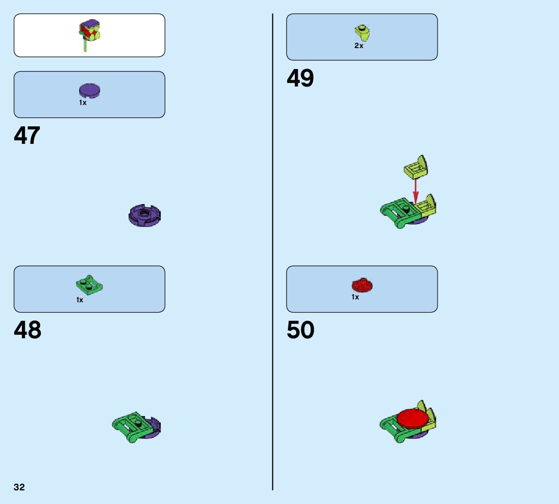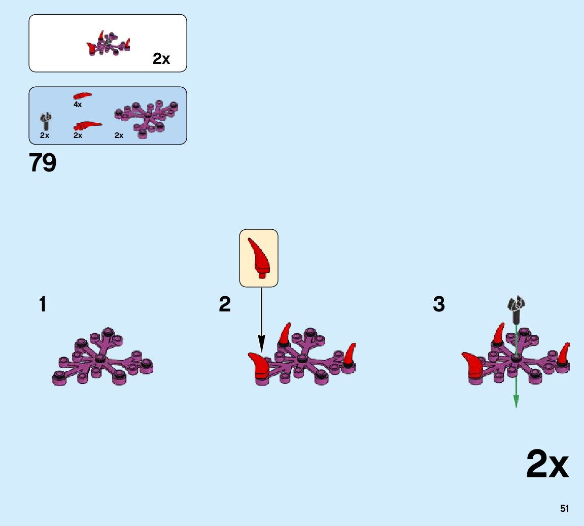 The assembly guide is prepared in a very understandable way for children and adult LEGO enthusiasts. A total of 880 picture galleries are shown, explaining the step-by-step construction stages for 3 different structures.
