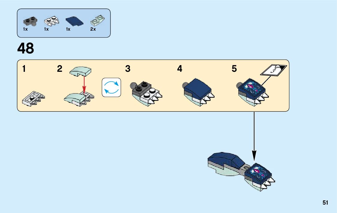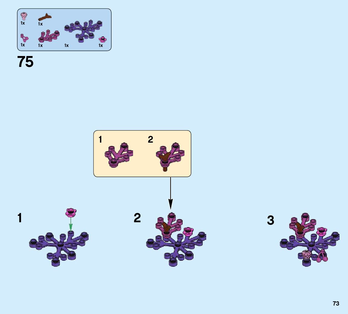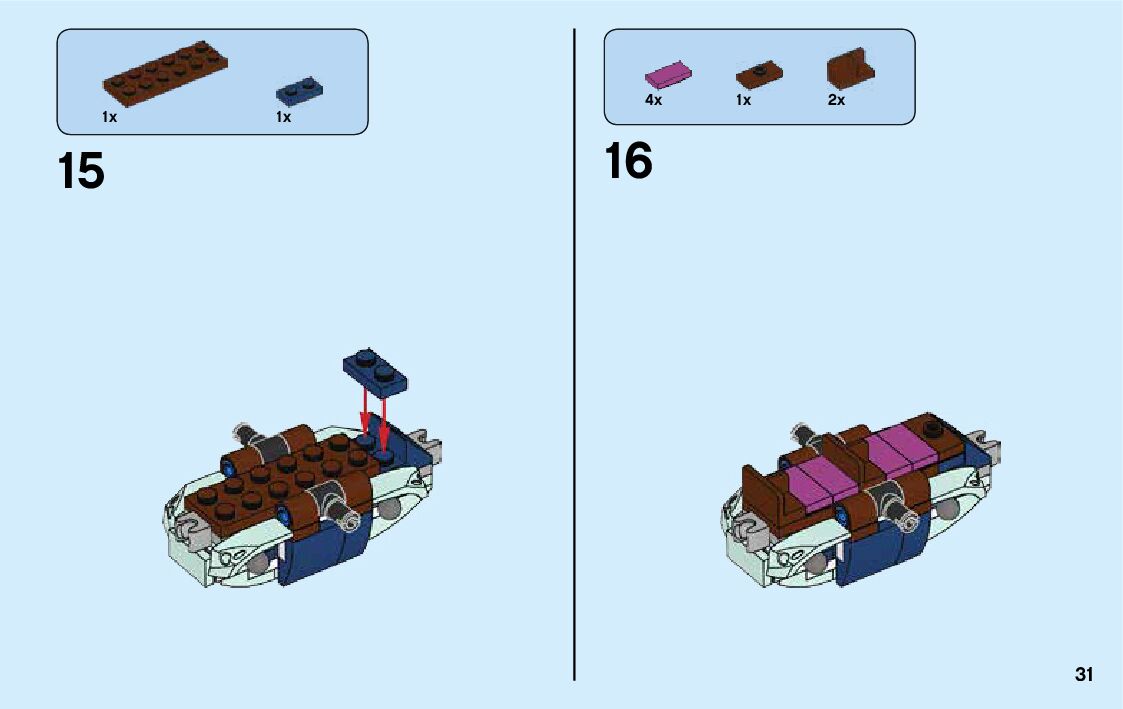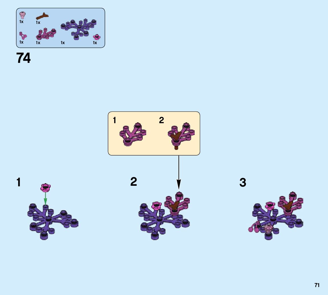 The assembly guide is prepared in a very understandable way for children and adult LEGO enthusiasts. A total of 740 picture galleries are shown, explaining the step-by-step construction stages for 2 different structures.
