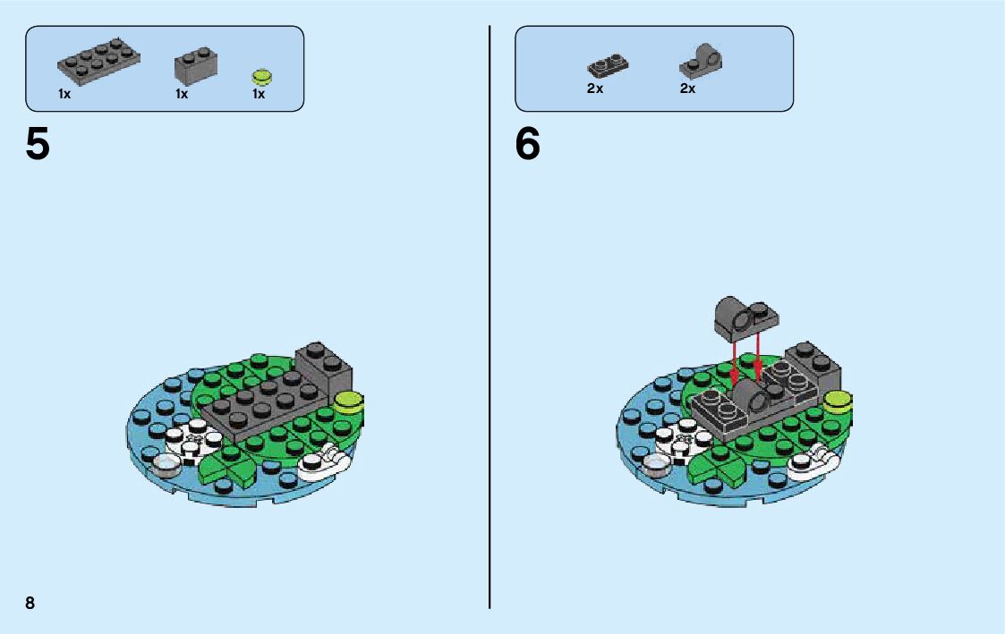 The assembly guide is prepared in a very understandable way for children and adult LEGO enthusiasts. A total of 56 picture galleries are shown, explaining the step-by-step construction stages for 1 different structures.