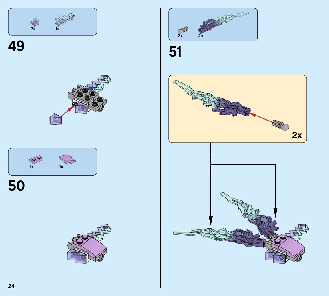 The assembly guide is prepared in a very understandable way for children and adult LEGO enthusiasts. A total of 784 picture galleries are shown, explaining the step-by-step construction stages for 2 different structures.