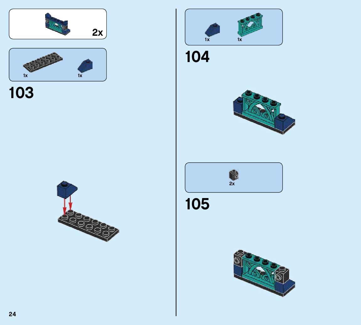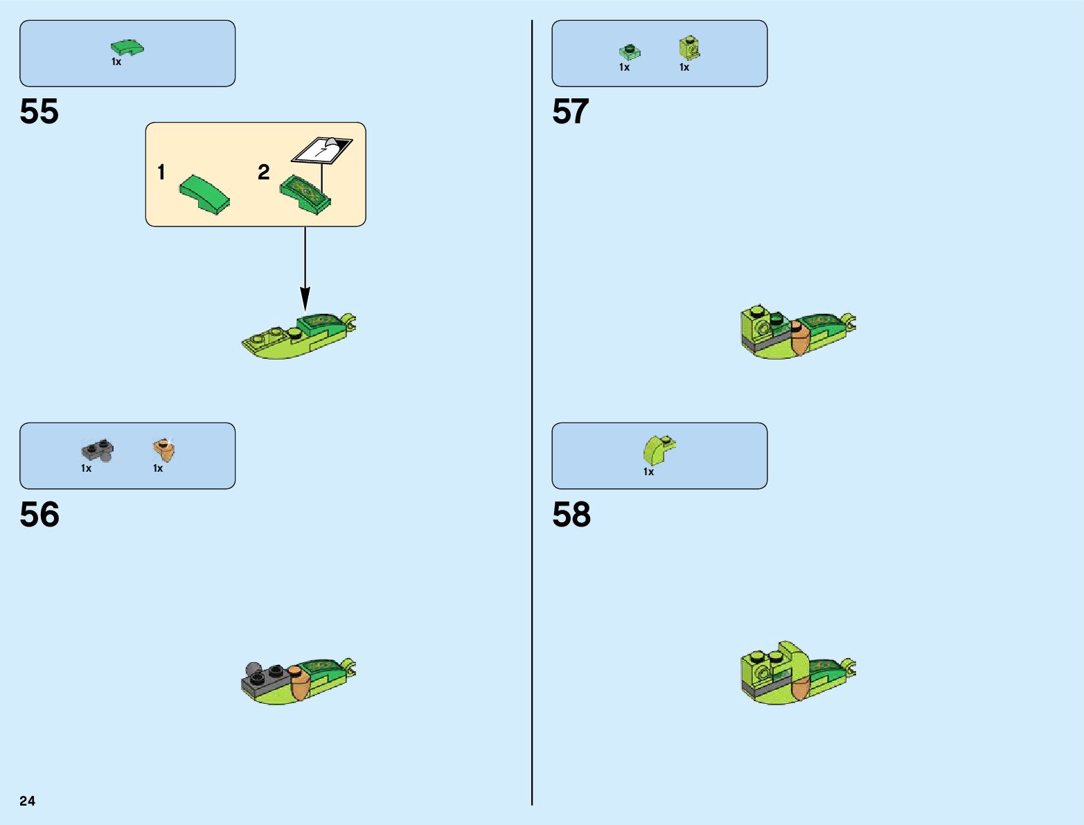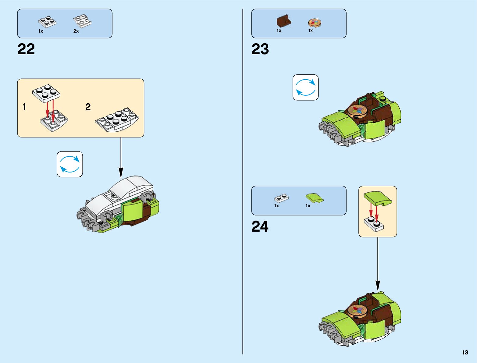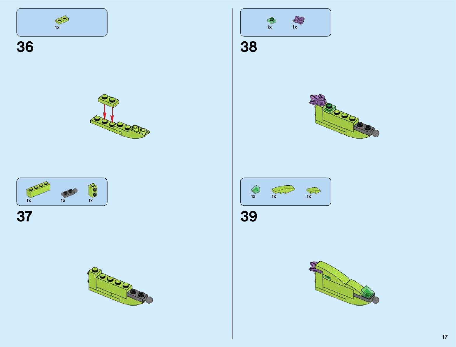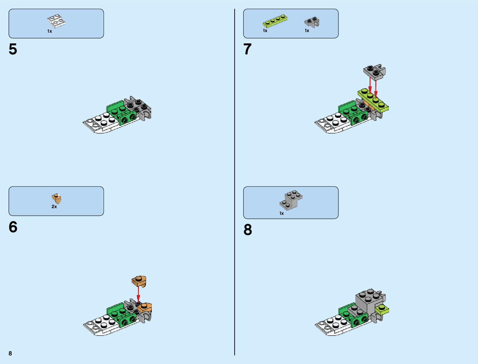 The assembly guide is prepared in a very understandable way for children and adult LEGO enthusiasts. A total of 820 picture galleries are shown, explaining the step-by-step construction stages for 3 different structures.