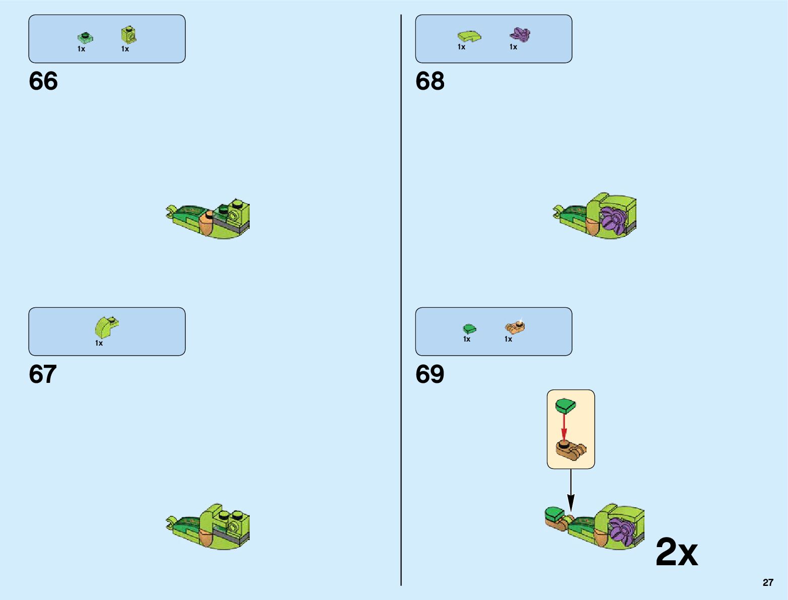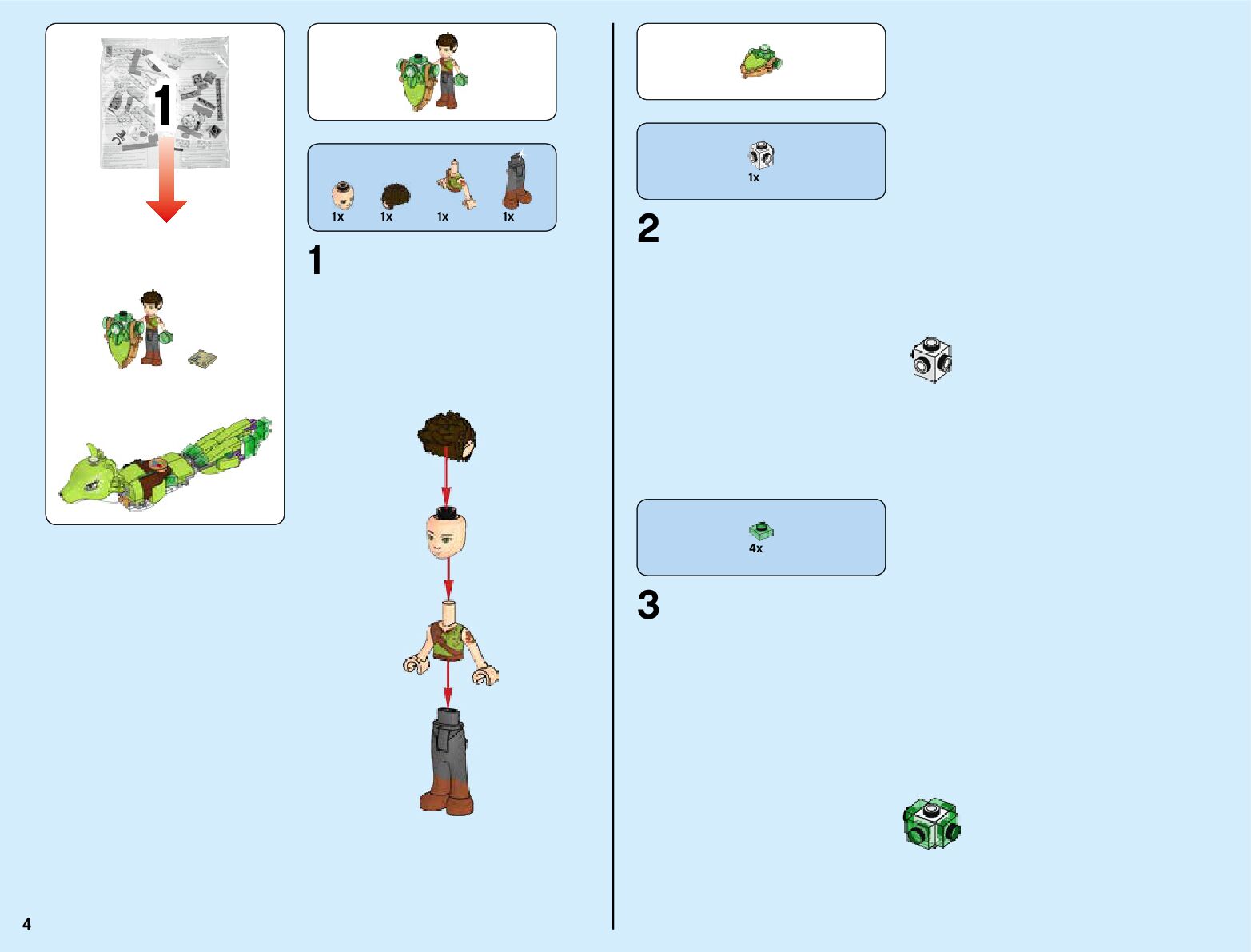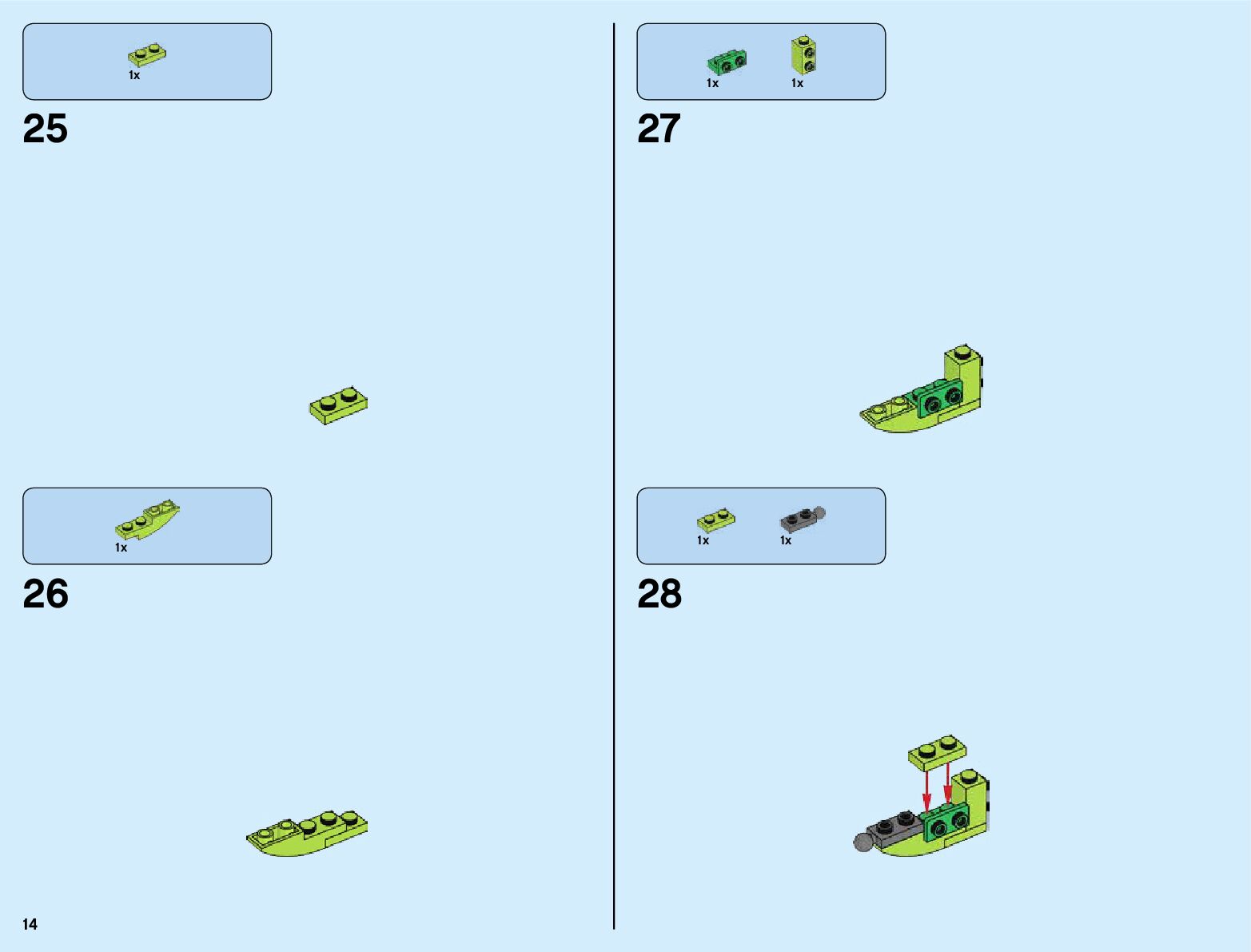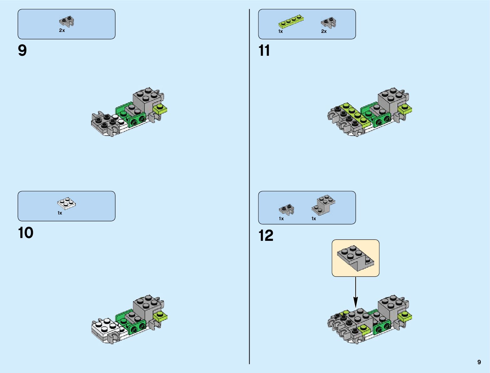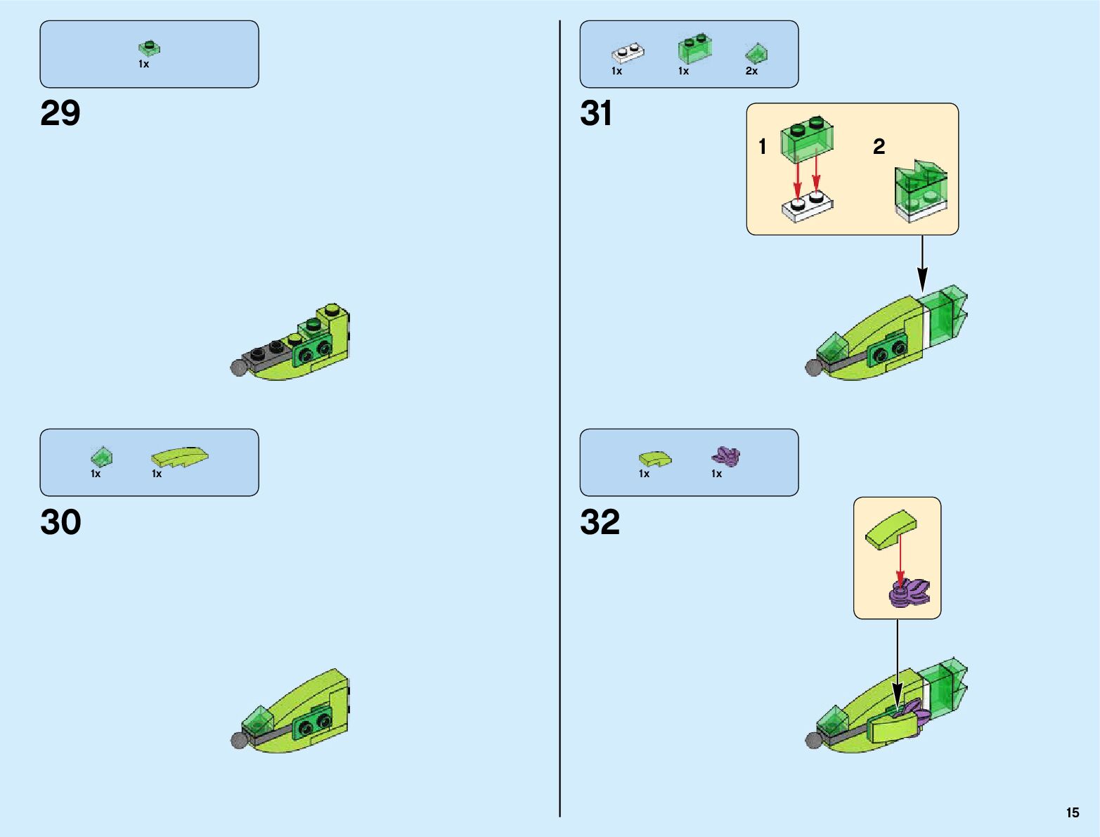The assembly guide is prepared in a very understandable way for children and adult LEGO enthusiasts. A total of 820 picture galleries are shown, explaining the step-by-step construction stages for 3 different structures.