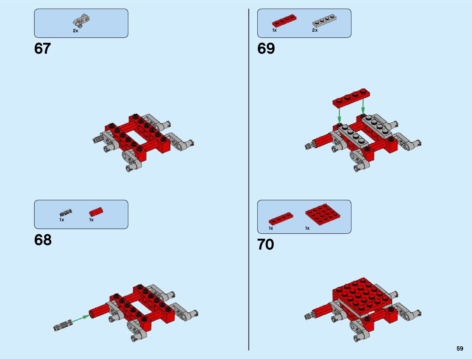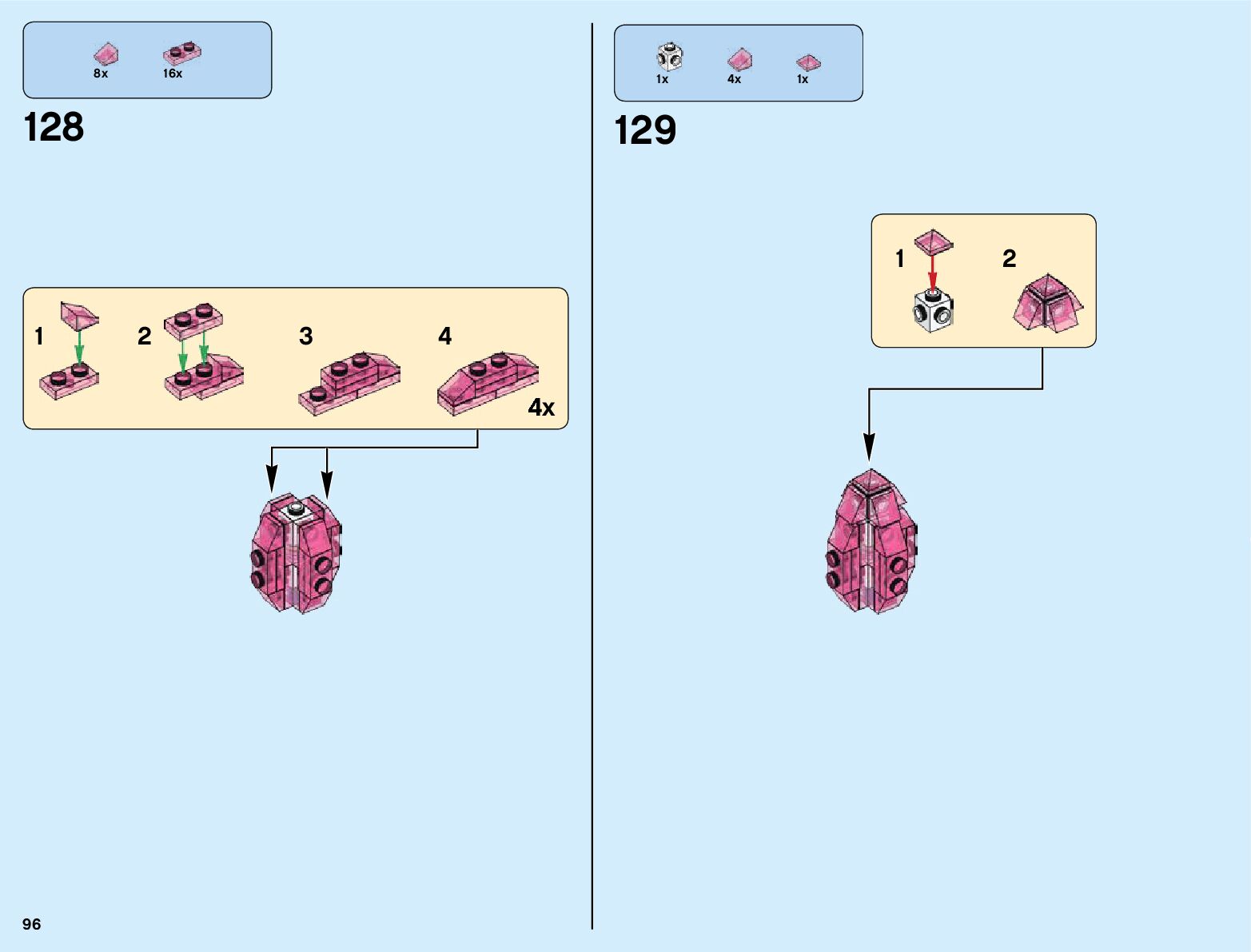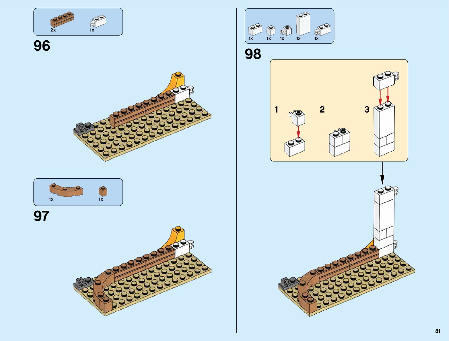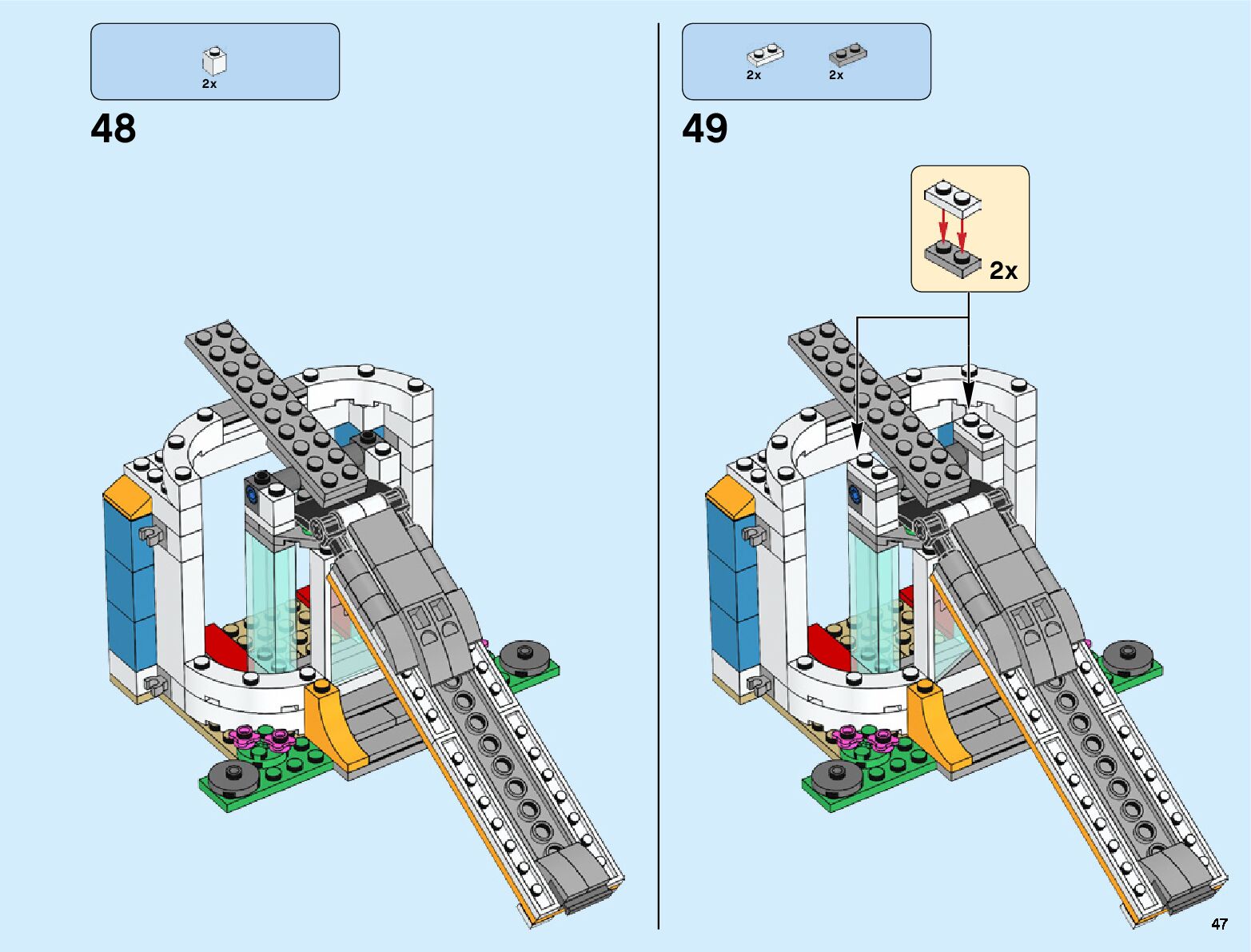 The assembly guide is prepared in a very understandable way for children and adult LEGO enthusiasts. A total of 132 picture galleries are shown, explaining the step-by-step construction stages for 1 different structures.