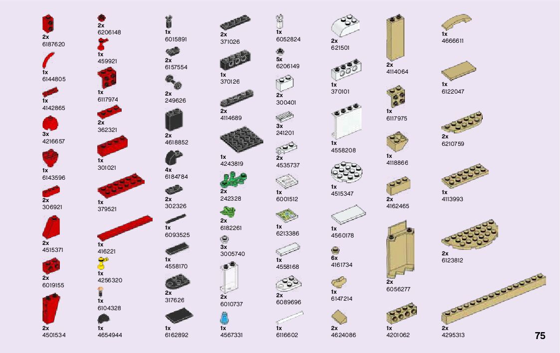 The assembly guide is prepared in a very understandable way for children and adult LEGO enthusiasts. A total of 80 picture galleries are shown, explaining the step-by-step construction stages for 1 different structures.