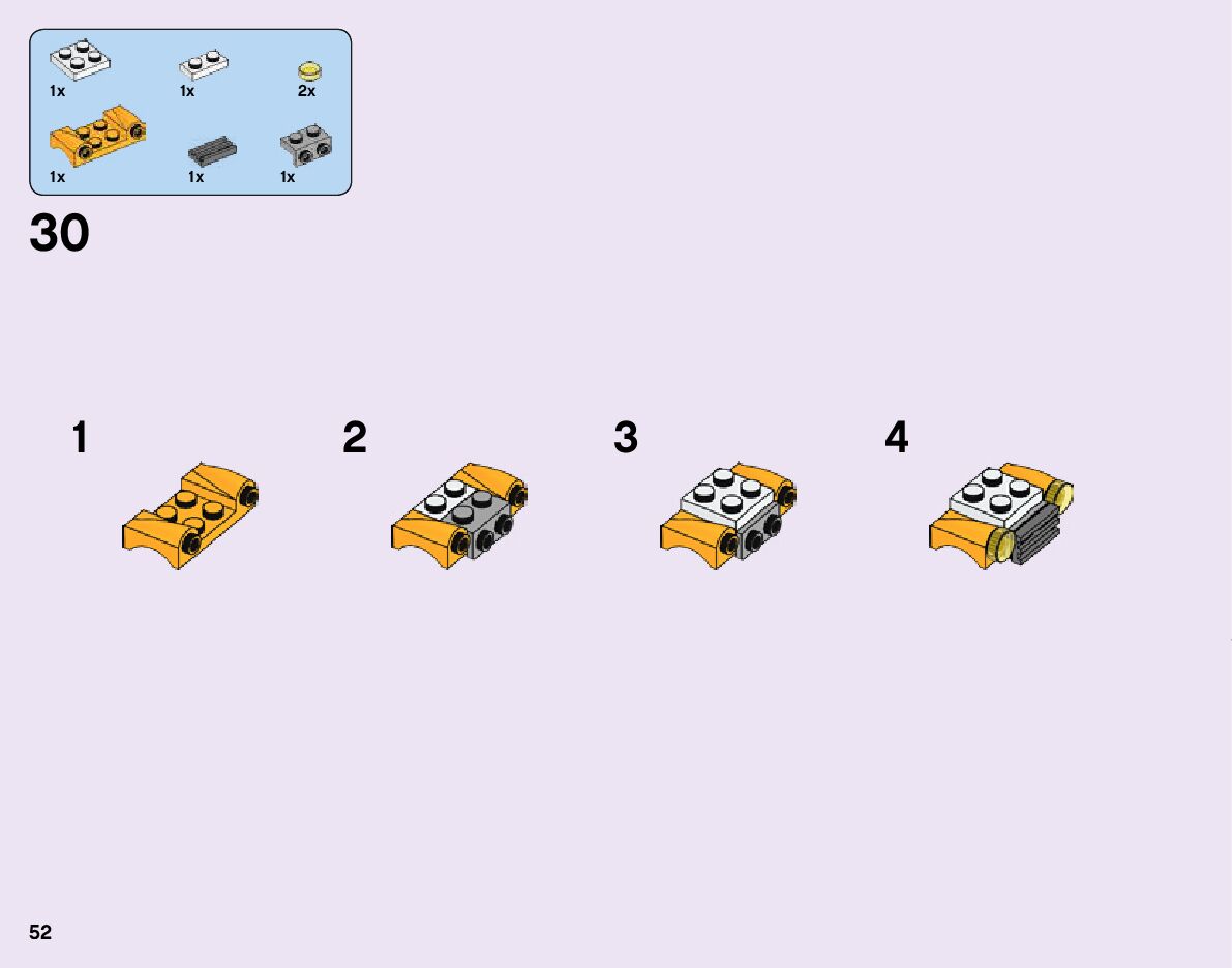 The assembly guide is prepared in a very understandable way for children and adult LEGO enthusiasts. A total of 92 picture galleries are shown, explaining the step-by-step construction stages for 1 different structures.
