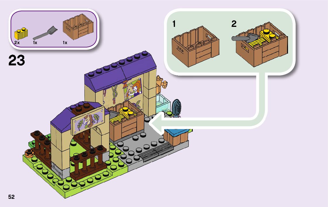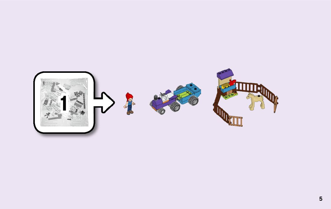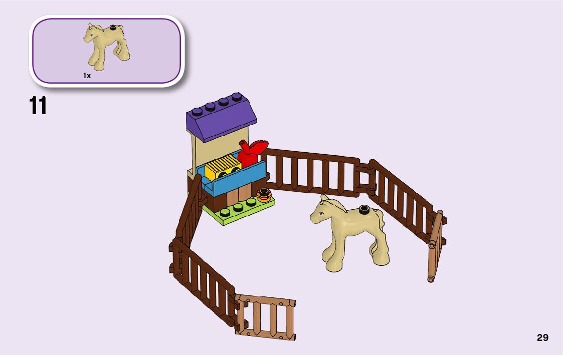 On this page you can find the original construction manual for the LEGO 41361 set. With the assembly manual you can easily learn how to build the 41361 Mia's Foal Stable step by step. The set was released in 2019.