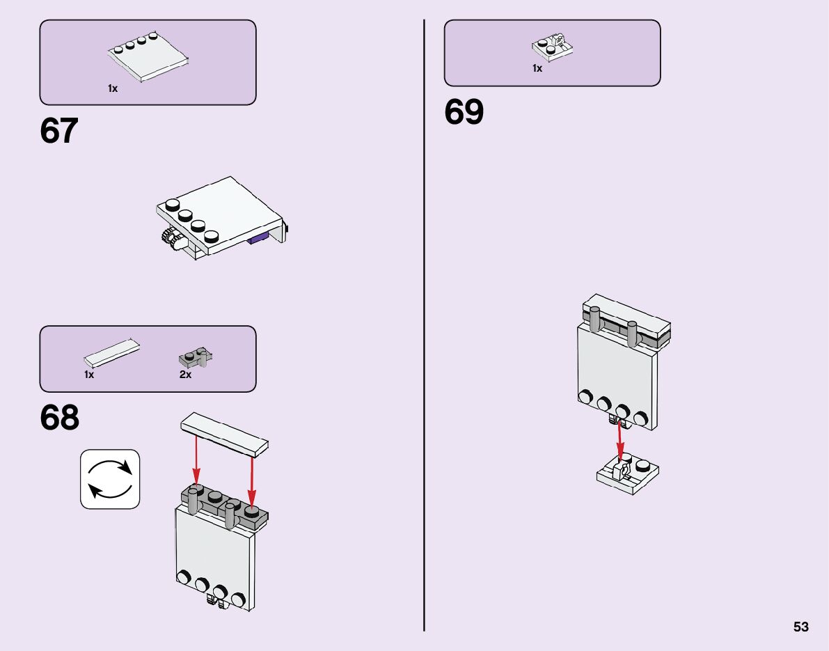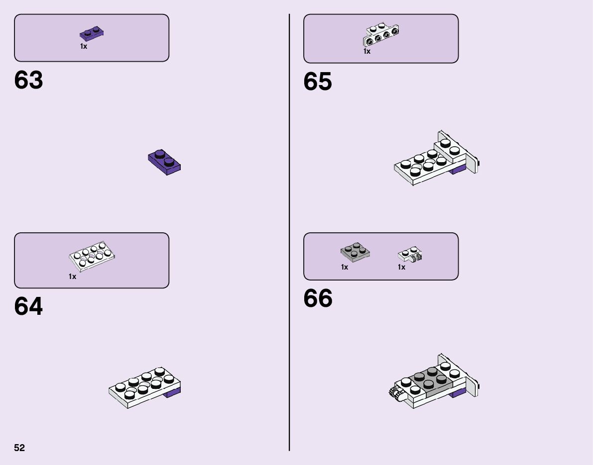 The assembly guide is prepared in a very understandable way for children and adult LEGO enthusiasts. A total of 60 picture galleries are shown, explaining the step-by-step construction stages for 1 different structures.