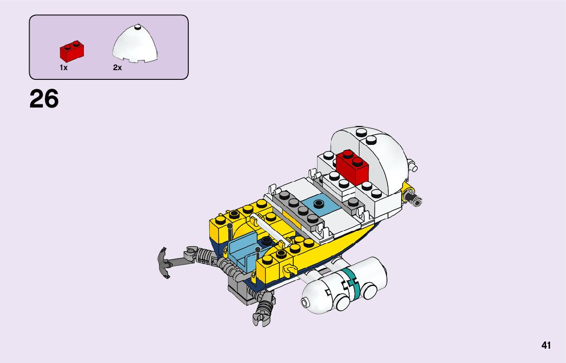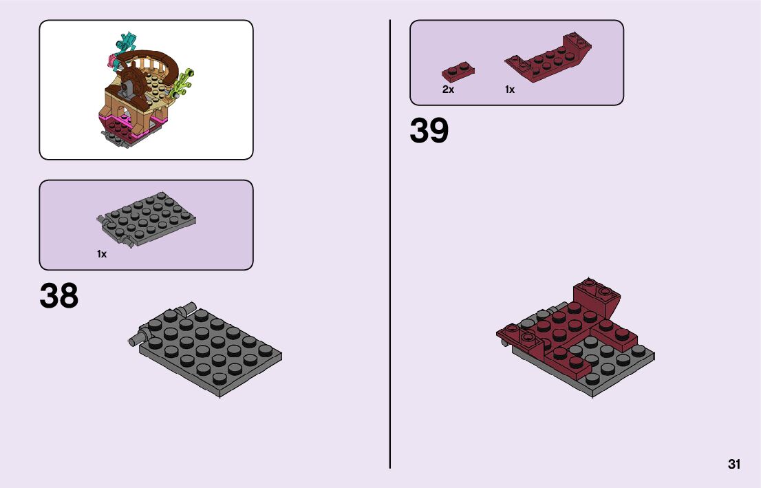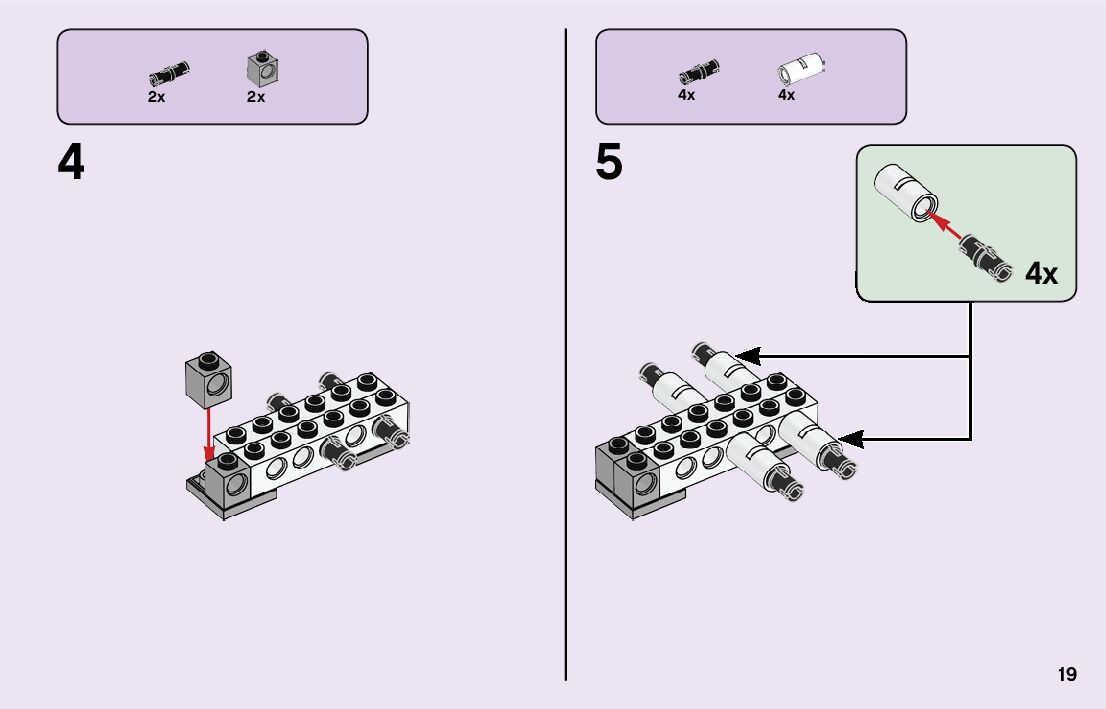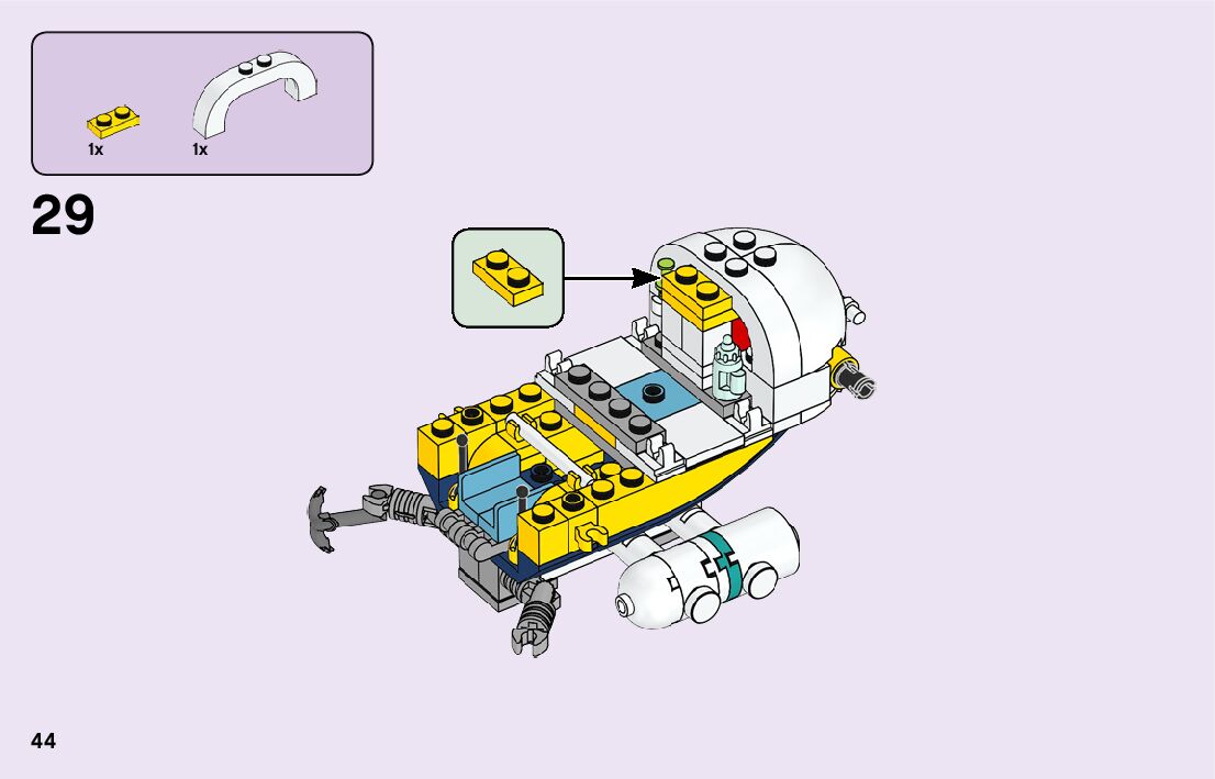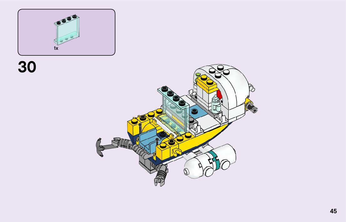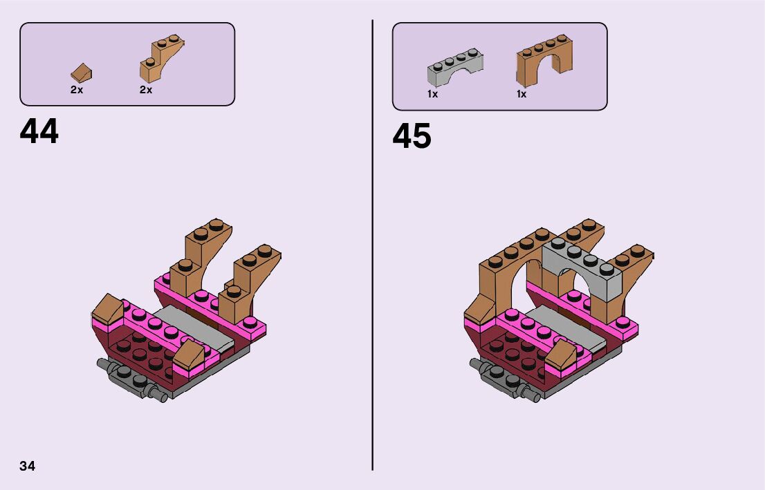 The assembly guide is prepared in a very understandable way for children and adult LEGO enthusiasts. A total of 116 picture galleries are shown, explaining the step-by-step construction stages for 2 different structures.