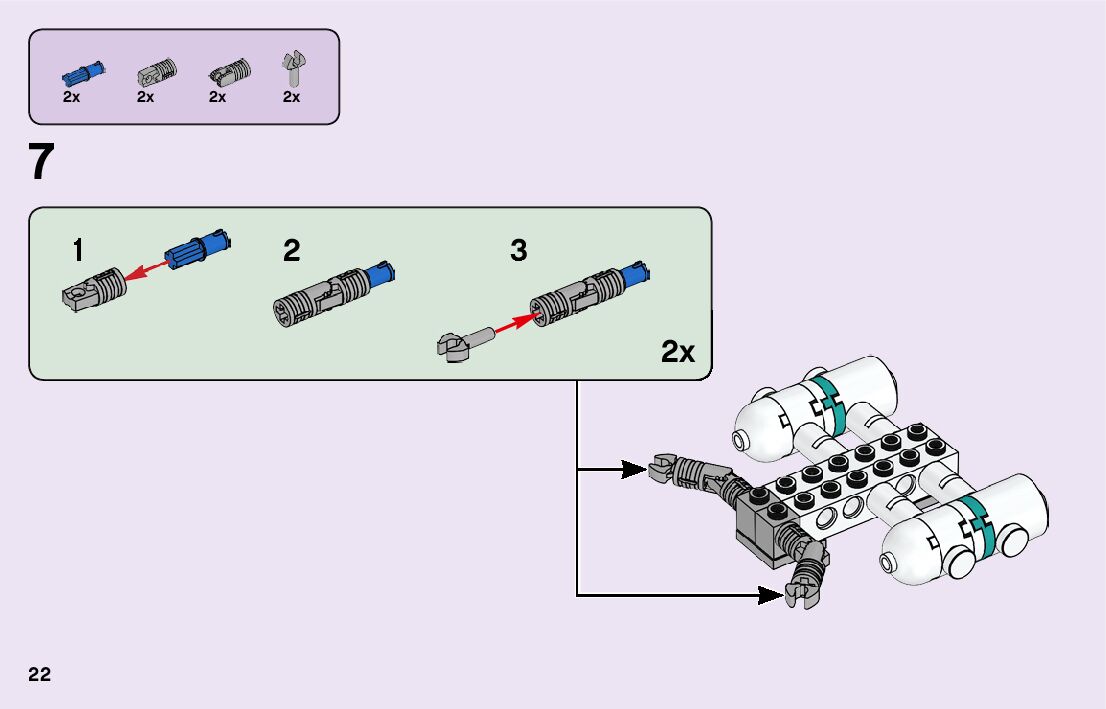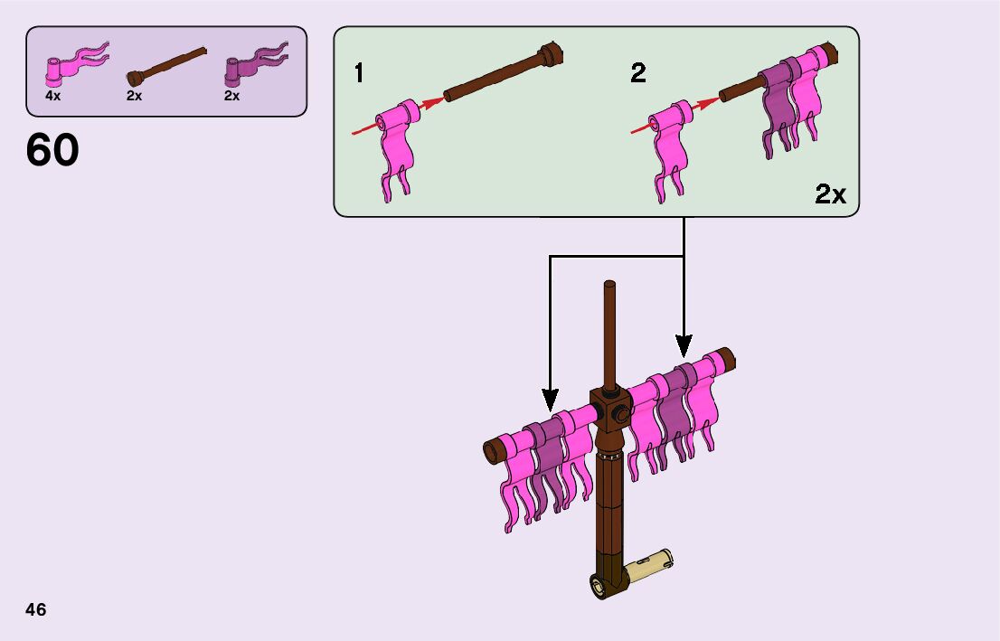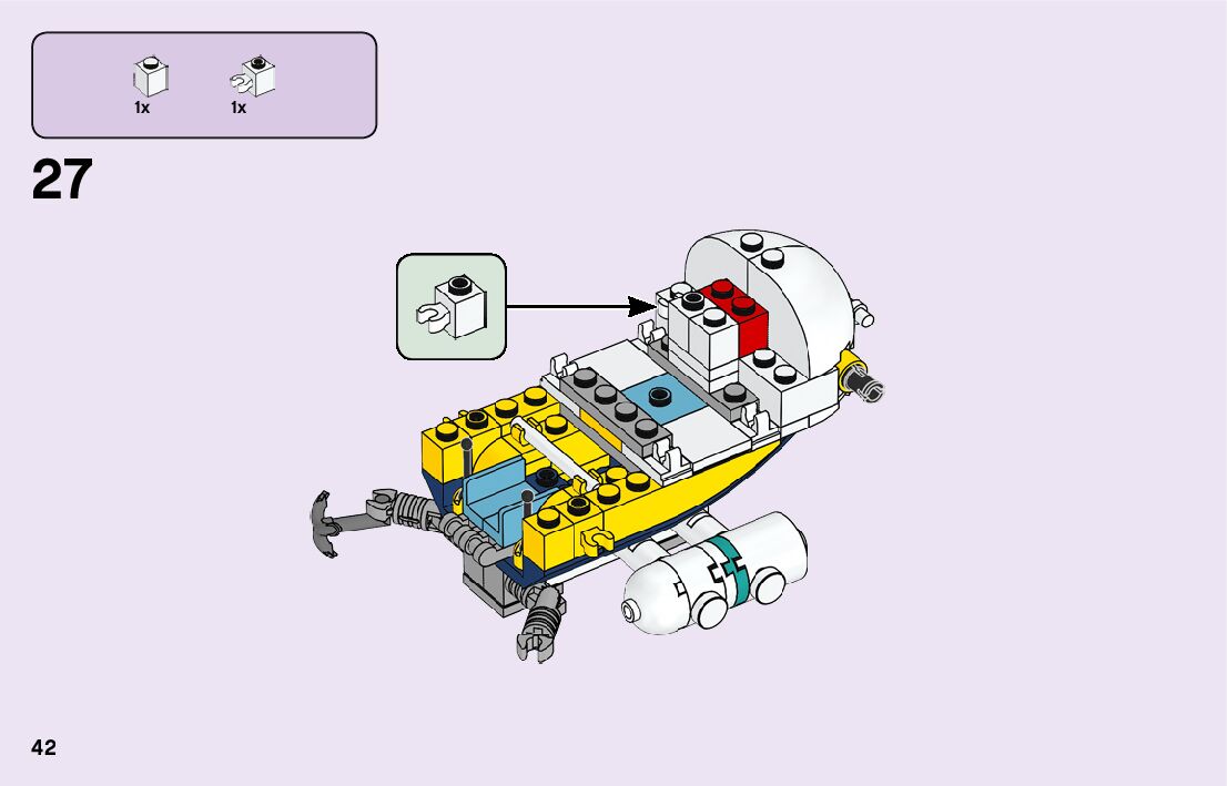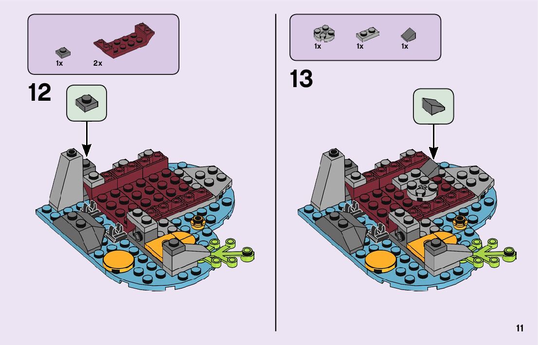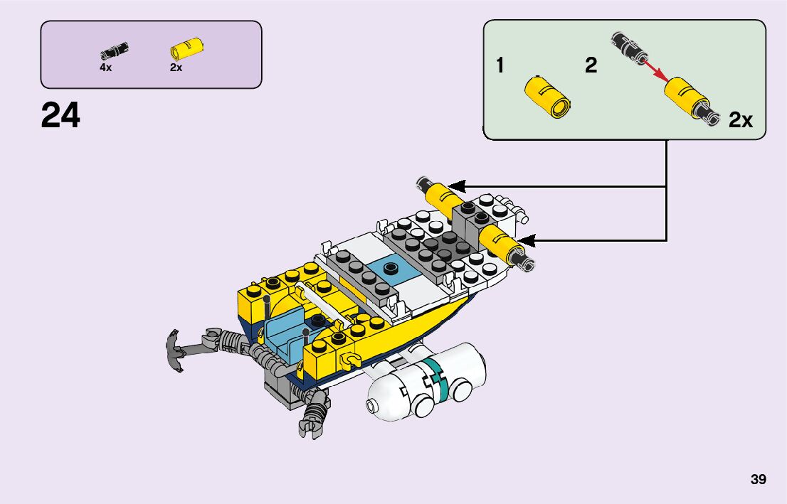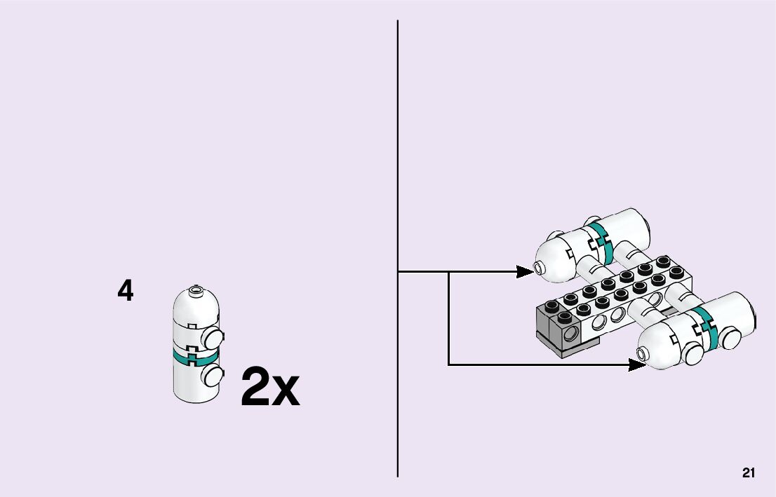 The assembly guide is prepared in a very understandable way for children and adult LEGO enthusiasts. A total of 116 picture galleries are shown, explaining the step-by-step construction stages for 2 different structures.
