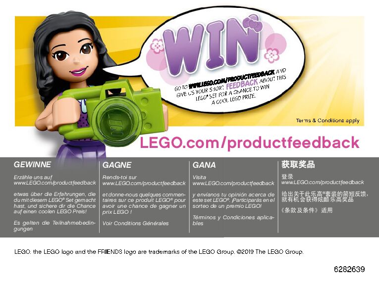 On this page you can find the original construction manual for the LEGO 41388 set. With the assembly manual you can easily learn how to build the 41388 Mia's Summer Heart Box step by step. The set was released in 2019.