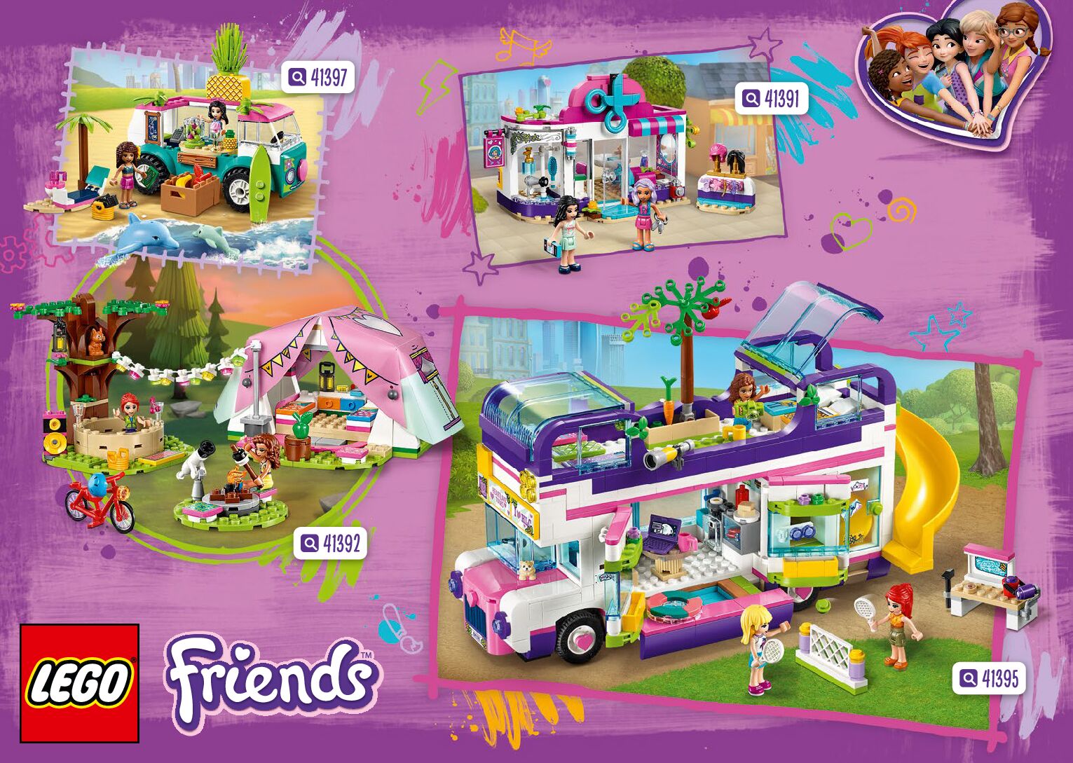 On this page you can find the original construction manual for the LEGO 41395 set. With the assembly manual you can easily learn how to build the 41395 Friendship Bus step by step. The set was released in 2020.