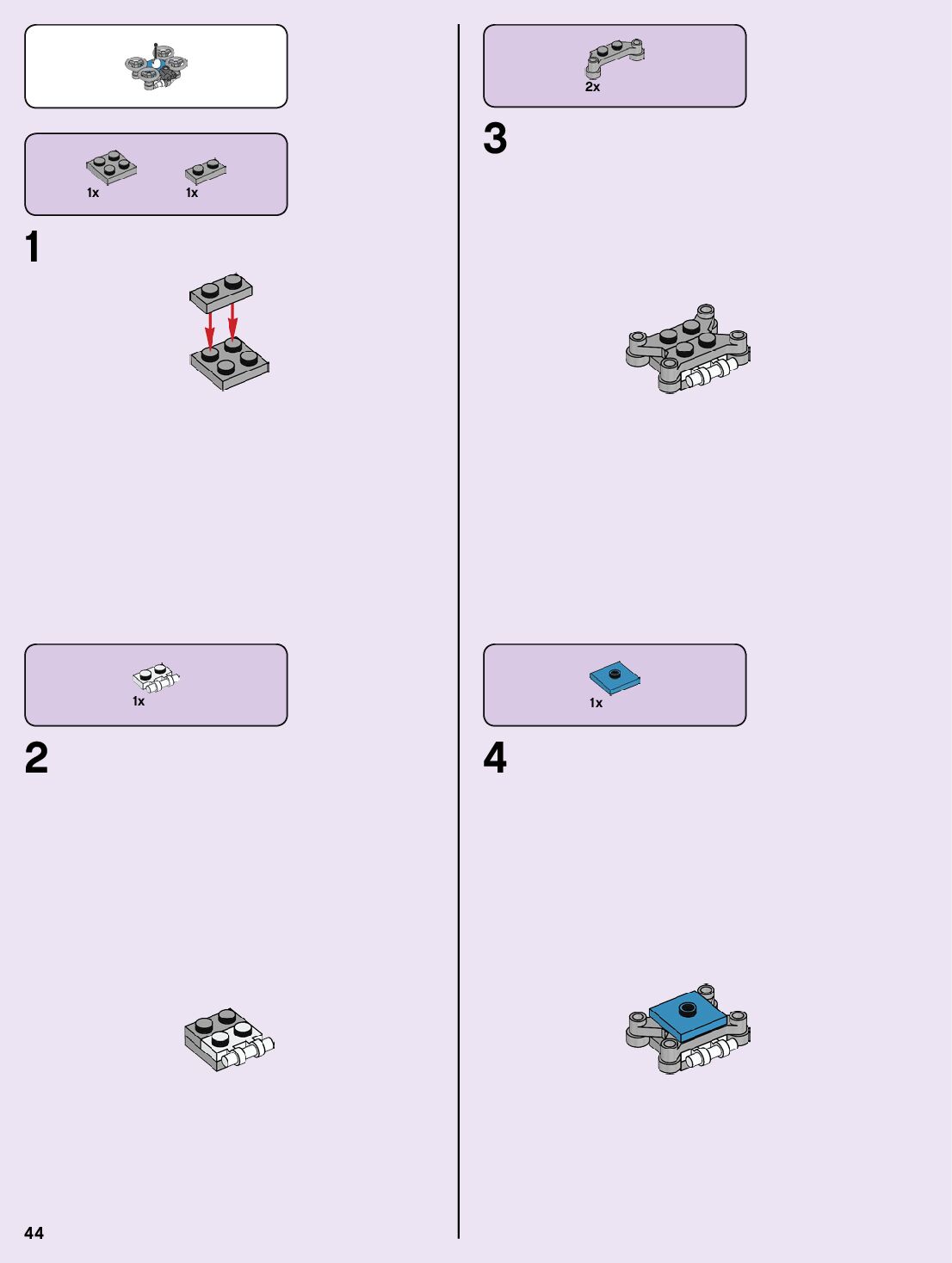 The assembly guide is prepared in a very understandable way for children and adult LEGO enthusiasts. A total of 176 picture galleries are shown, explaining the step-by-step construction stages for 2 different structures.