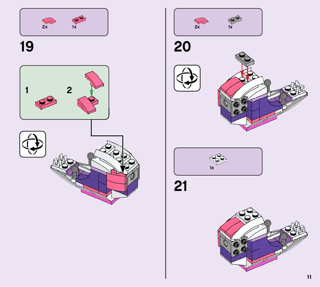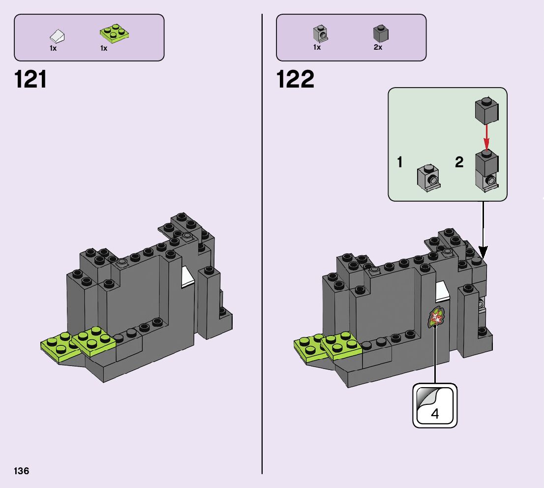 The assembly guide is prepared in a very understandable way for children and adult LEGO enthusiasts. A total of 208 picture galleries are shown, explaining the step-by-step construction stages for 2 different structures.