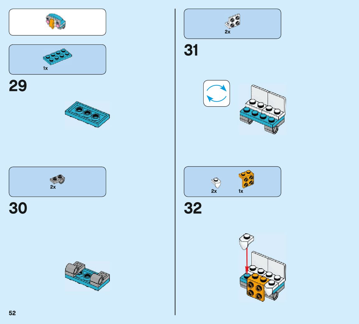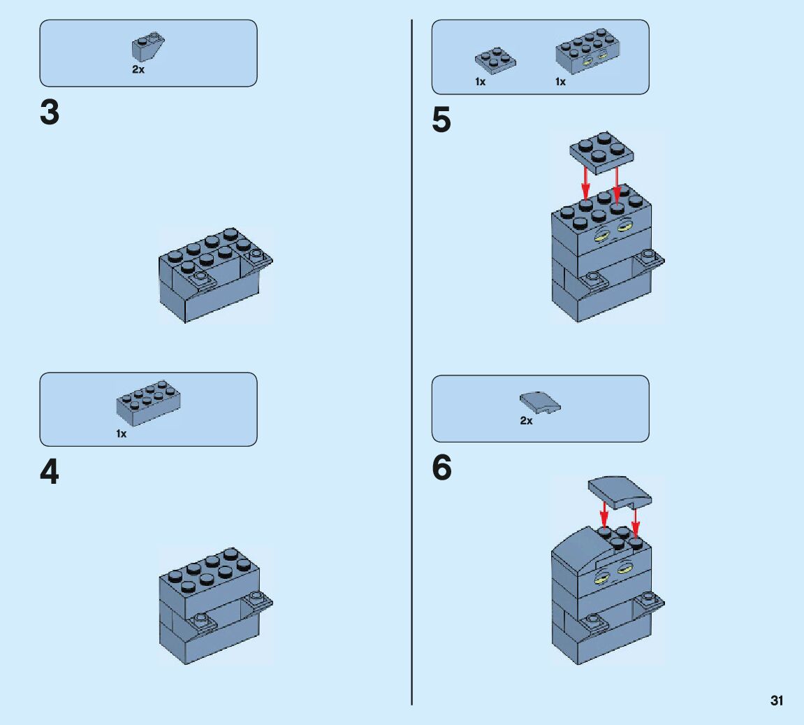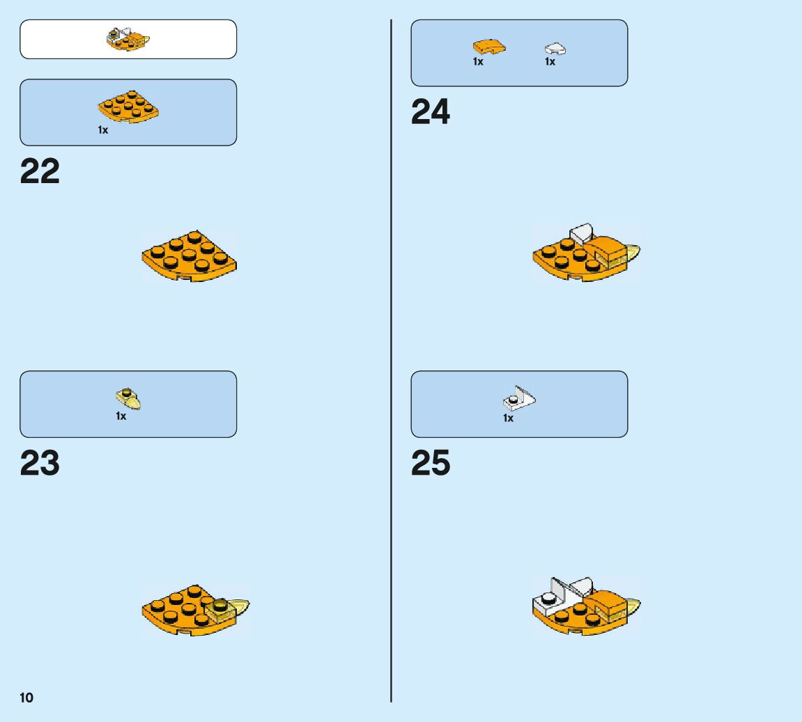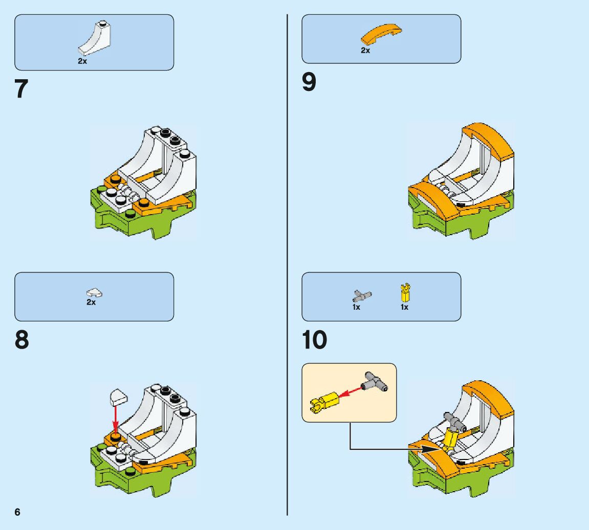 The assembly guide is prepared in a very understandable way for children and adult LEGO enthusiasts. A total of 620 picture galleries are shown, explaining the step-by-step construction stages for 2 different structures.