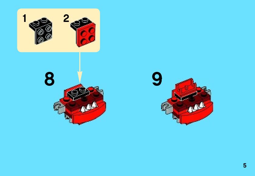 The assembly guide is prepared in a very understandable way for children and adult LEGO enthusiasts. A total of 59 picture galleries are shown, explaining the step-by-step construction stages for 2 different structures.