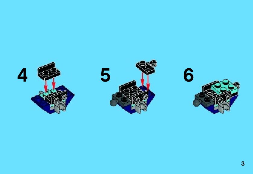 The assembly guide is prepared in a very understandable way for children and adult LEGO enthusiasts. A total of 69 picture galleries are shown, explaining the step-by-step construction stages for 3 different structures.