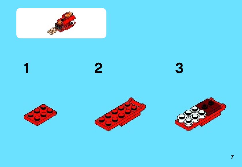 The assembly guide is prepared in a very understandable way for children and adult LEGO enthusiasts. A total of 86 picture galleries are shown, explaining the step-by-step construction stages for 3 different structures.