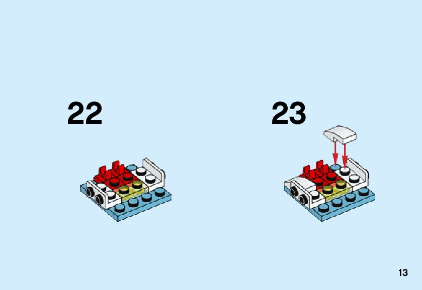 The assembly guide is prepared in a very understandable way for children and adult LEGO enthusiasts. A total of 320 picture galleries are shown, explaining the step-by-step construction stages for 3 different structures.