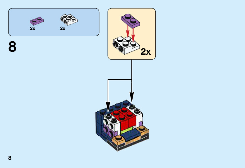 The assembly guide is prepared in a very understandable way for children and adult LEGO enthusiasts. A total of 32 picture galleries are shown, explaining the step-by-step construction stages for 1 different structures.
