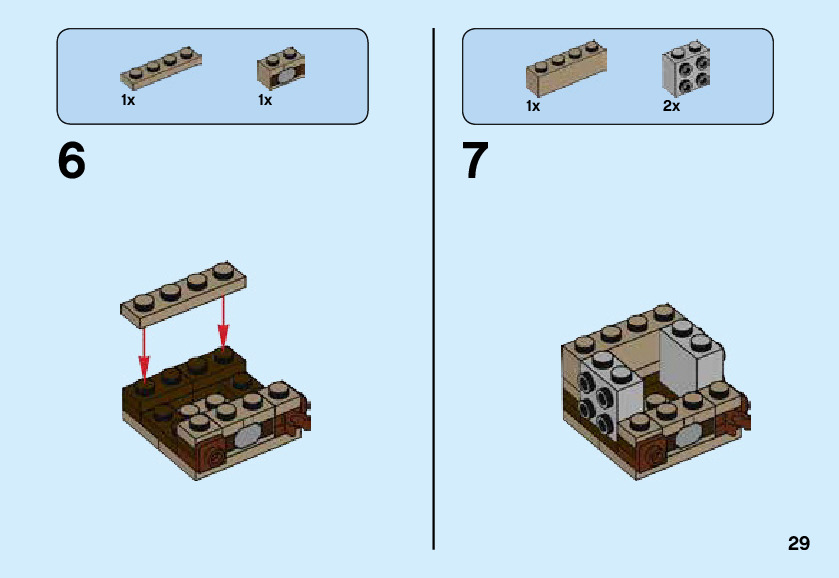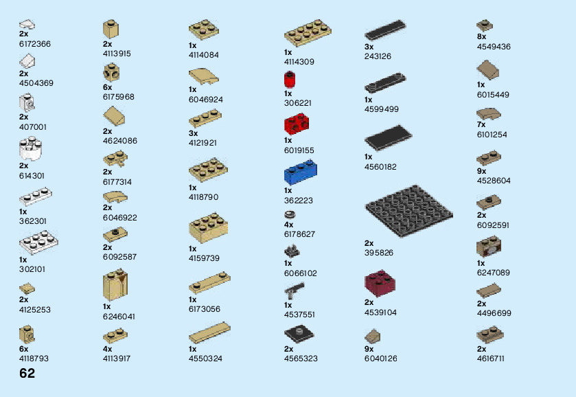 The assembly guide is prepared in a very understandable way for children and adult LEGO enthusiasts. A total of 64 picture galleries are shown, explaining the step-by-step construction stages for 1 different structures.