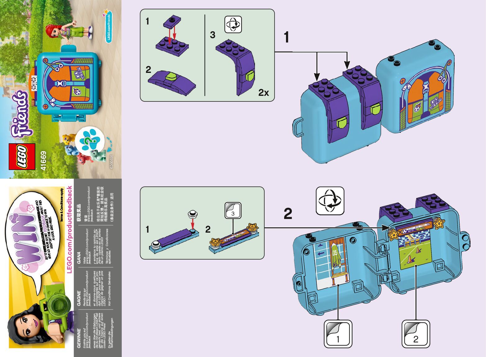 On this page you can find the original construction manual for the LEGO 41669 set. With the assembly manual you can easily learn how to build the 41669 Mia's Soccer Cube step by step. The set was released in 2021.
