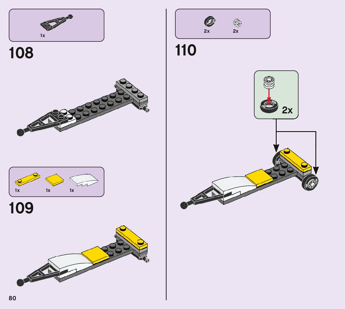 The assembly guide is prepared in a very understandable way for children and adult LEGO enthusiasts. A total of 132 picture galleries are shown, explaining the step-by-step construction stages for 2 different structures.