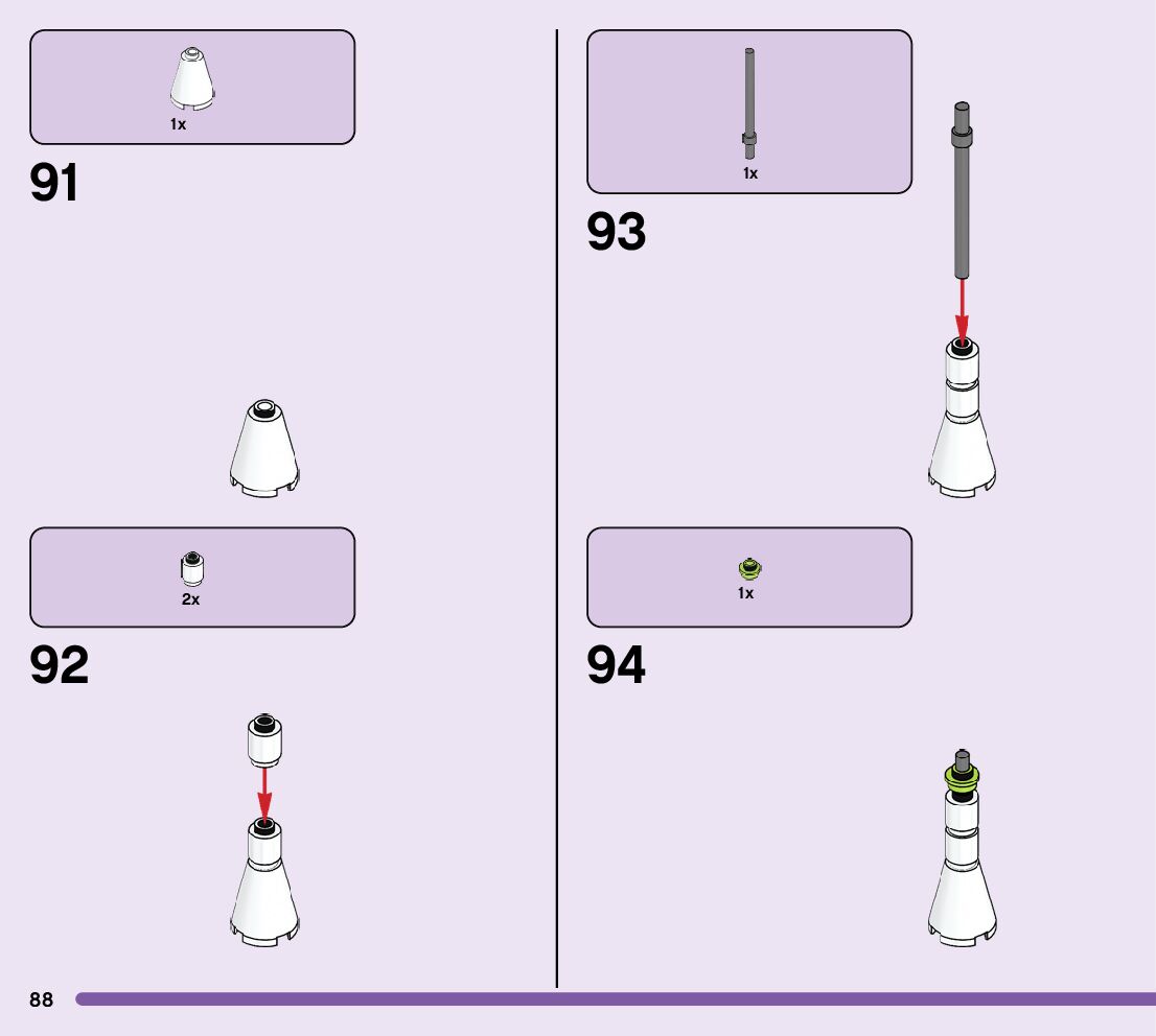 The assembly guide is prepared in a very understandable way for children and adult LEGO enthusiasts. A total of 152 picture galleries are shown, explaining the step-by-step construction stages for 2 different structures.