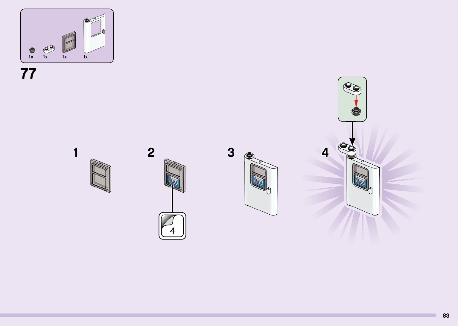 The assembly guide is prepared in a very understandable way for children and adult LEGO enthusiasts. A total of 768 picture galleries are shown, explaining the step-by-step construction stages for 1 different structures.