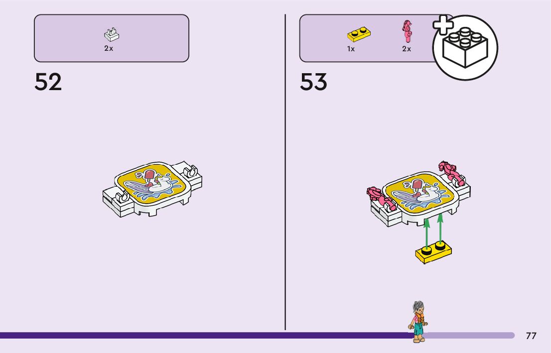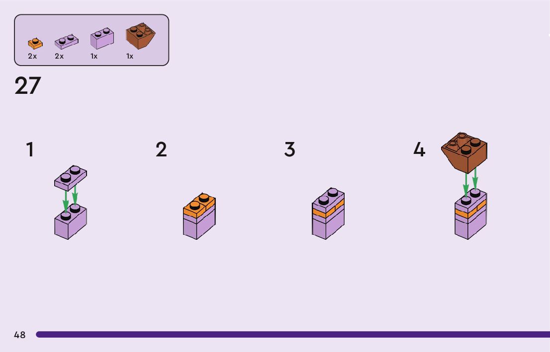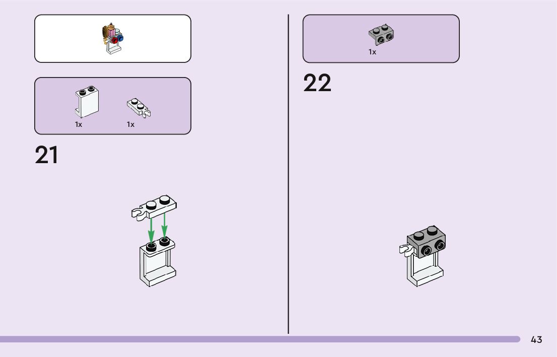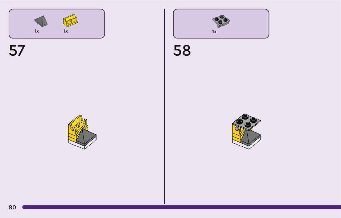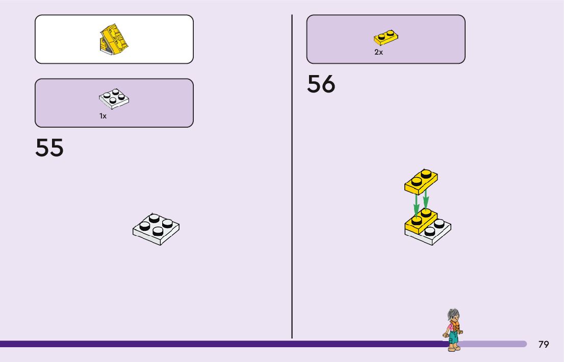 The assembly guide is prepared in a very understandable way for children and adult LEGO enthusiasts. A total of 560 picture galleries are shown, explaining the step-by-step construction stages for 2 different structures.